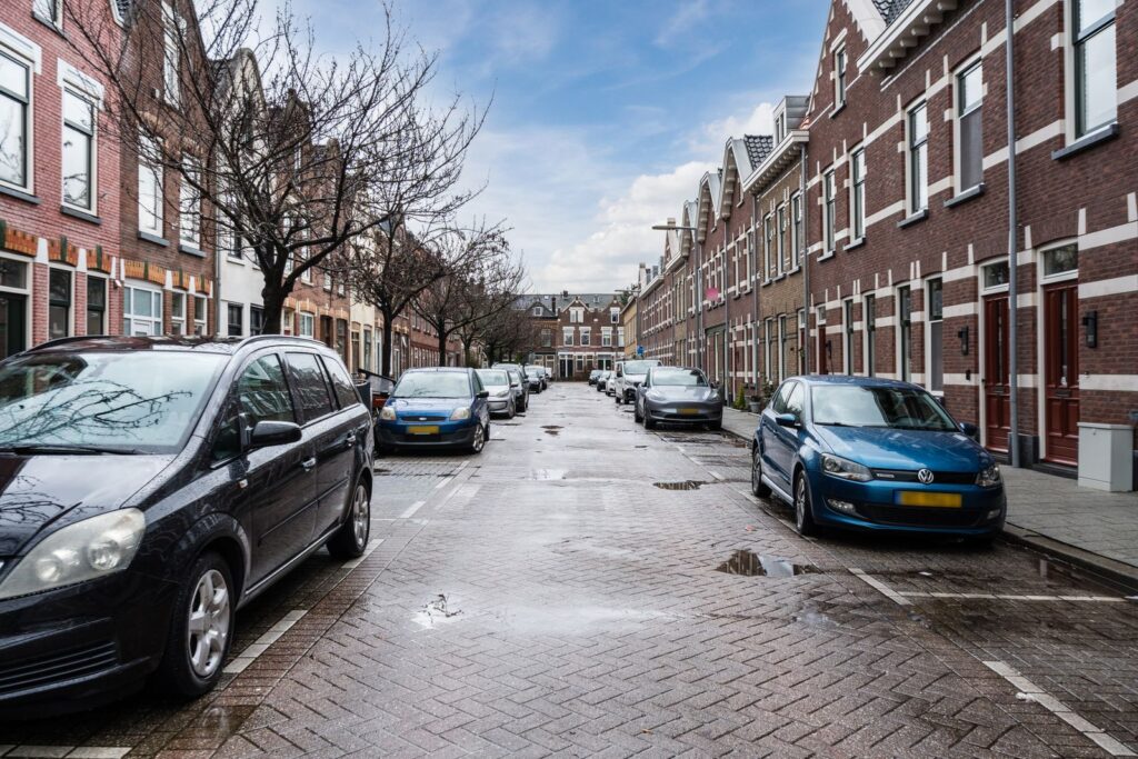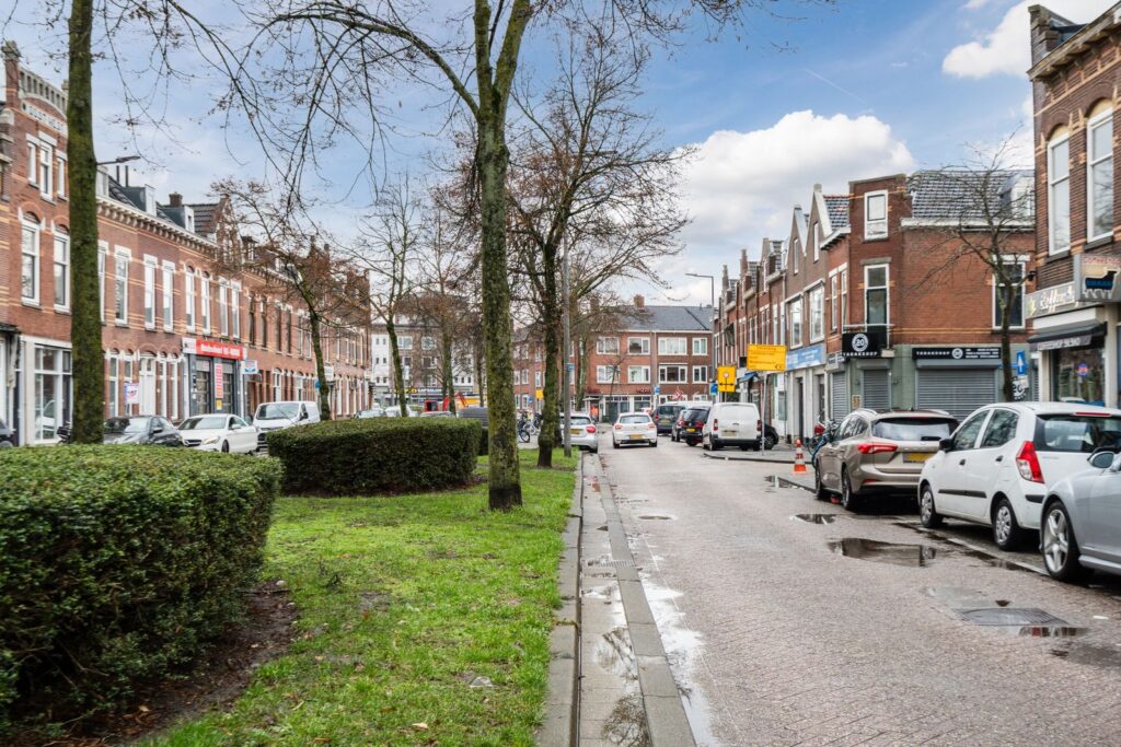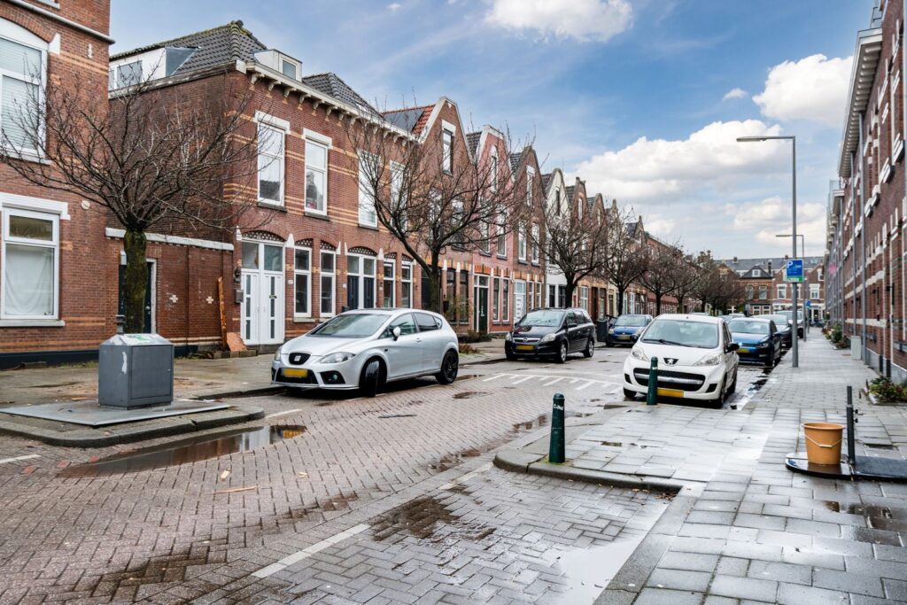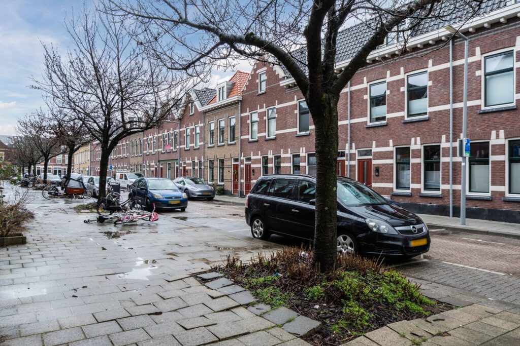 Vanaf straatniveau bereik je de voordeur van de woning. Na binnenkomst leidt een trap naar boven naar de woonverdieping.