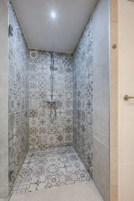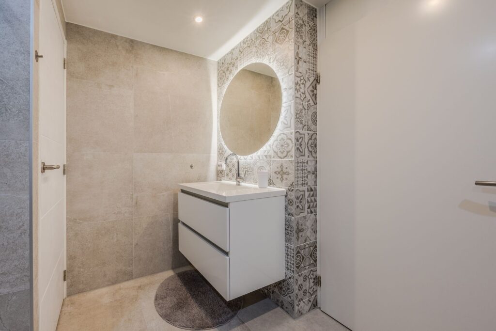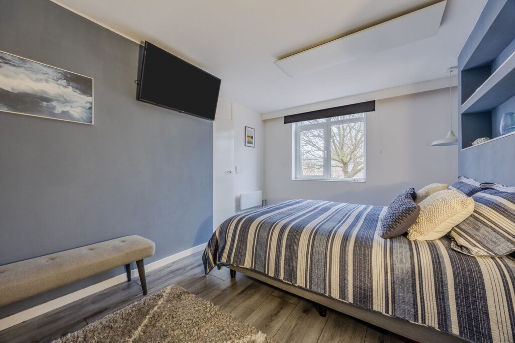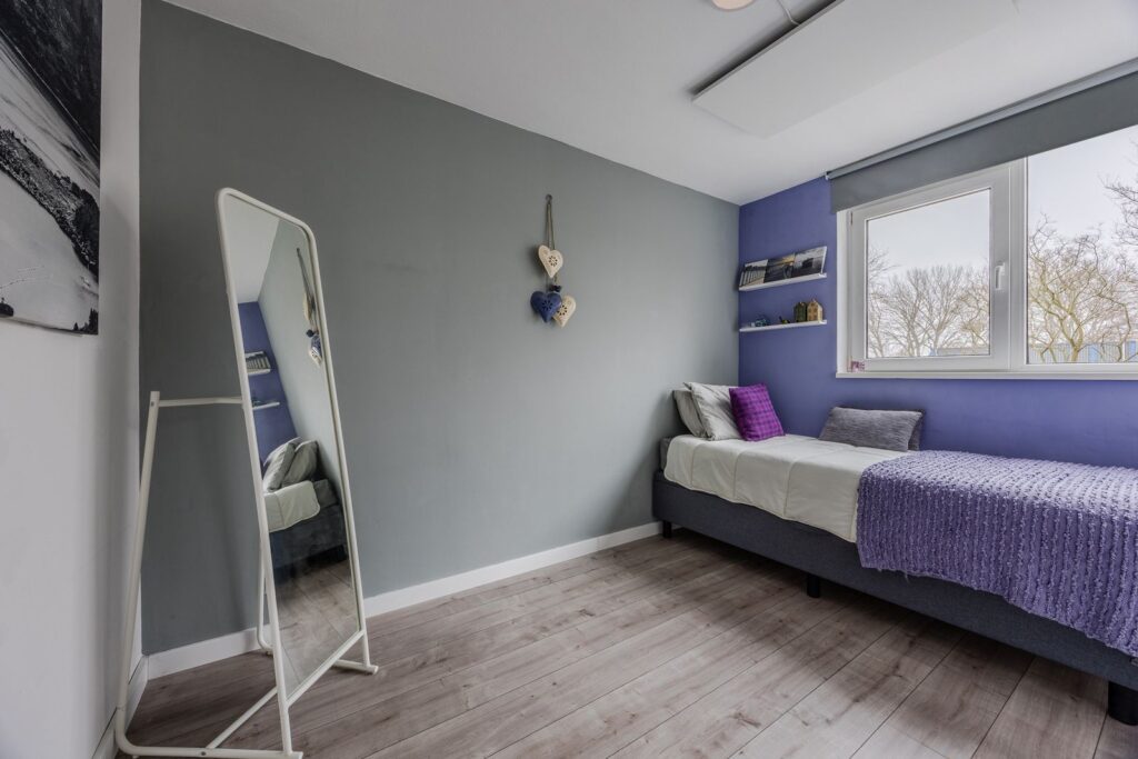Overloop, drie goed bemeten slaapkamers en een complete badkamer voorzien van douche, wastafel, wastafelmeubel, toilet en vloerverwarming. Daarnaast zijn de slaapkamers voorzien van infraroodverwarming.
