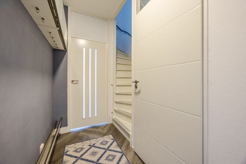Entree, hal met toilet, lichte woonkamer met schuifpui naar de achtertuin. De tuinligging op het zuiden zorgt voor een aangename lichtinval gedurende de dag. De woning is voorzien van vloerverwarming op de begane grond en infrarood verwarming.