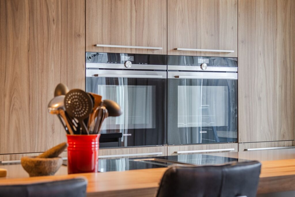 De keuken biedt volop kastruimte, een grote koelkast, aparte vriezer en twee ruime ovens.