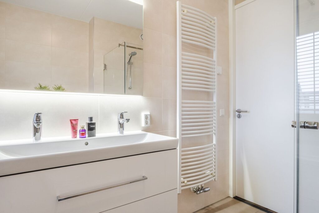 Hier liggen drie comfortabele slaapkamers, allemaal voorzien van vloerverwarming én een eigen thermostaat, heerlijk warm in de winter en altijd precies de gewenste temperatuur. De badkamer is een fijne plek om te ontspannen, met een ruime inloopdouche, een ligbad, een radiator en eveneens vloerverwarming.