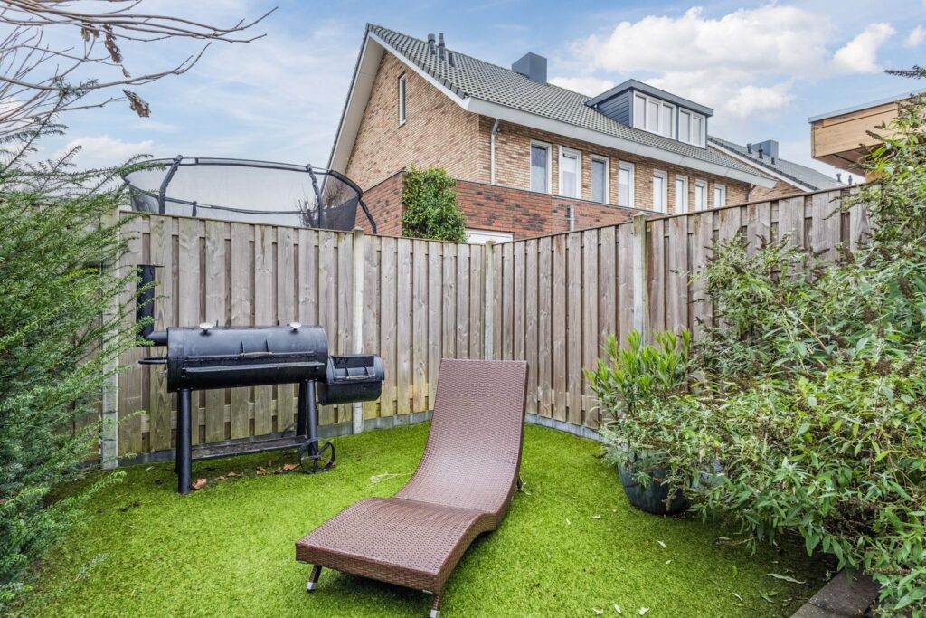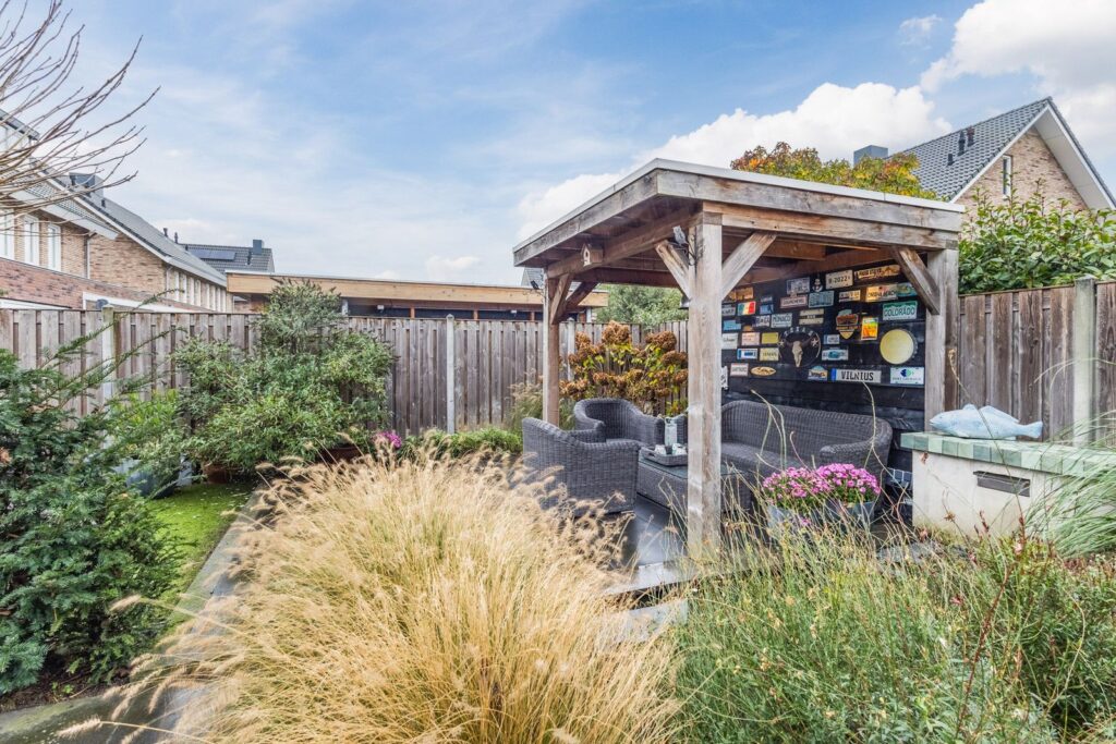 De zonnige achtertuin, gelegen op het westen, biedt de hele middag en avond zon. De tuin is aangelegd door een hovenier en heeft meerdere fijne zitplekken tussen rijk groen en beplanting die in verschillende seizoenen bloeit.