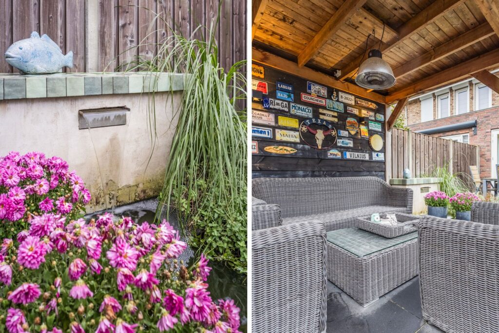 Dankzij de dubbele openslaande deuren vloeit het woongedeelte moeiteloos over in de tuin, waardoor binnen en buiten één geheel worden.