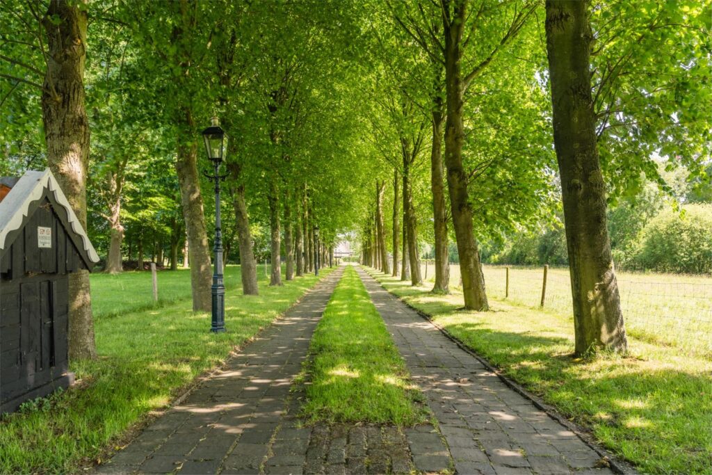 De woonboerderij, ligt op een royaal perceel van 2,26 ha grond met volledige privacy, en panoramisch uitzicht over de omliggende landerijen en een eigen natuurvijver. De woonboerderij is gelegen aan een zeer rustige weg en bereik je via een lange oprijlaan, geflankeerd door lindebomen en klassieke lantaarns. Zodra je de elektrische poort passeert, laat je de wereld achter je en betreed je je eigen domein van rust, ruimte en vrijheid.