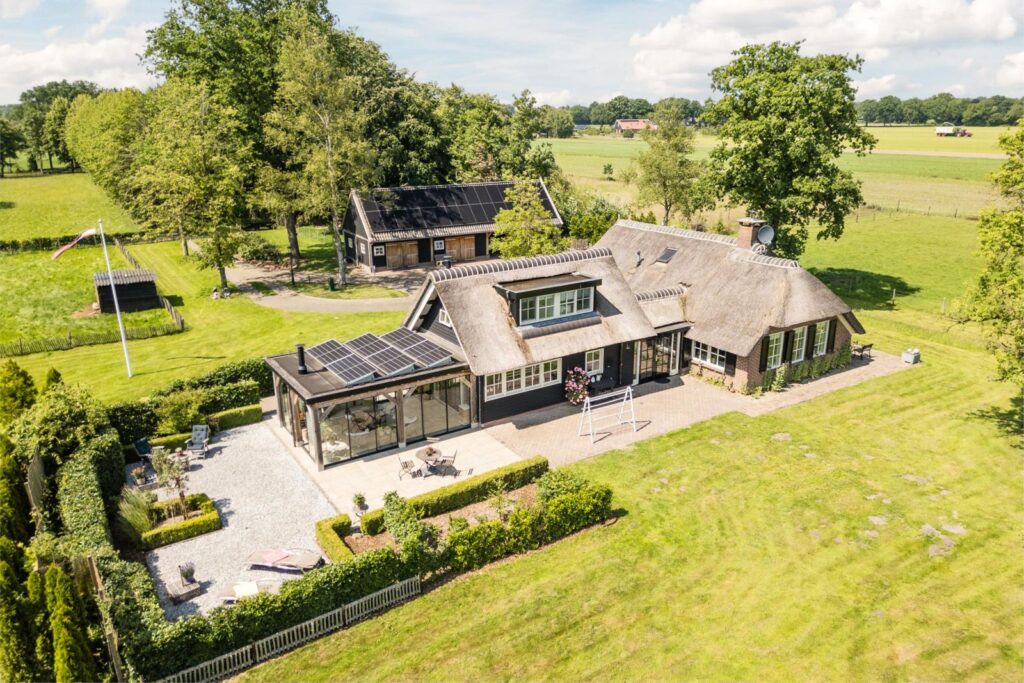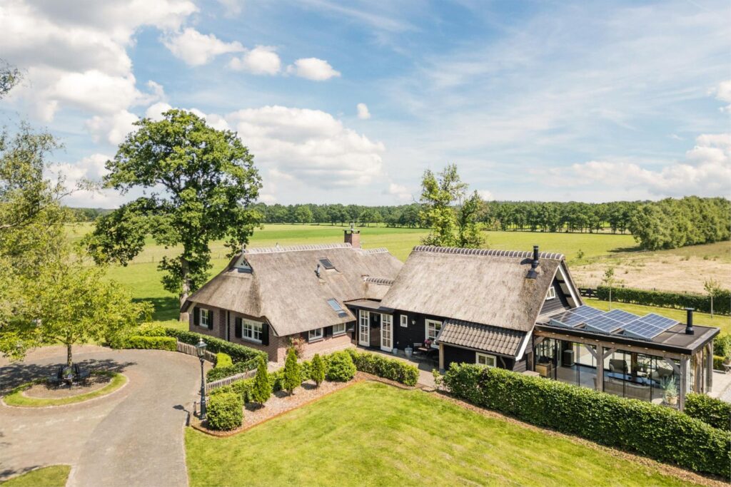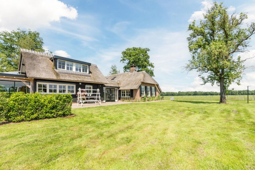 OP EEN UNIEKE LOCATIE EN VOLLEDIG VRIJ GELEGEN, SFEERVOL VERBOUWDE, INSTAPKLARE RIETGEDEKTE WOONBOERDERIJ OP 2,26 HA, GRENZEND AAN NATIONAAL PARK DWINGELDERVELD, ENERGIELABEL A+ - RUINEN (DRENTHE)