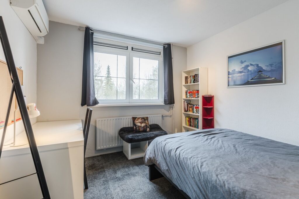 Op deze verdieping bevinden zich twee ruime slaapkamers en één kleinere slaapkamer, ideaal als kinderkamer, werkkamer of inloopkast. De badkamer is modern ingericht en voorzien van een inloopdouche, wastafelmeubel en een tweede toilet. Alle ramen op deze verdieping zijn voorzien van kunststofkozijnen met dubbel glas.