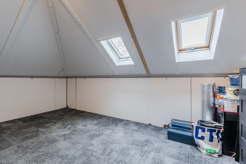 De royale open zolder met twee dakramen biedt volop mogelijkheden: een vierde slaapkamer, werkruimte, hobbykamer of extra bergruimte. Dankzij de open indeling kan deze verdieping volledig naar wens worden ingericht. Ook is hier de CV-opstelling (2017) en wasmachineaansluiting te vinden.