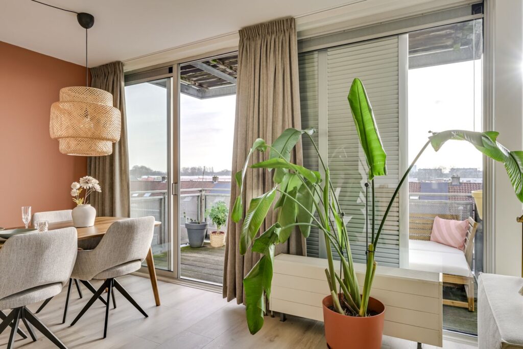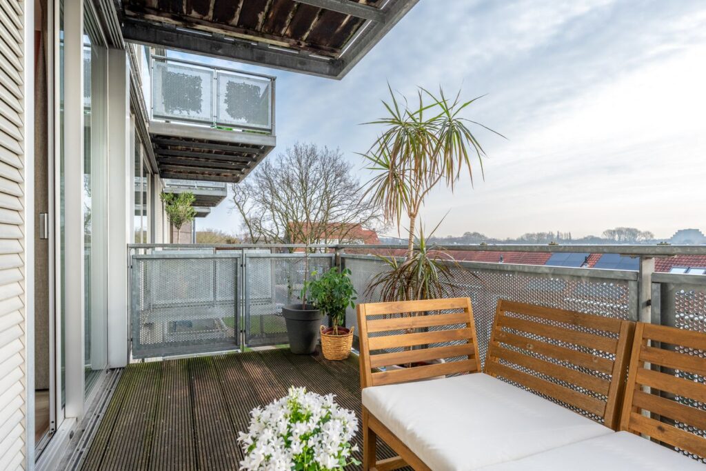 From the living room, step directly onto the balcony through the sliding doors. Here you can relax in privacy while enjoying wide views over greenery and the city. Due to its southwest orientation, you can fully enjoy the afternoon sun. Thanks to the elevated position, you experience plenty of privacy and tranquility — a true penthouse feeling.