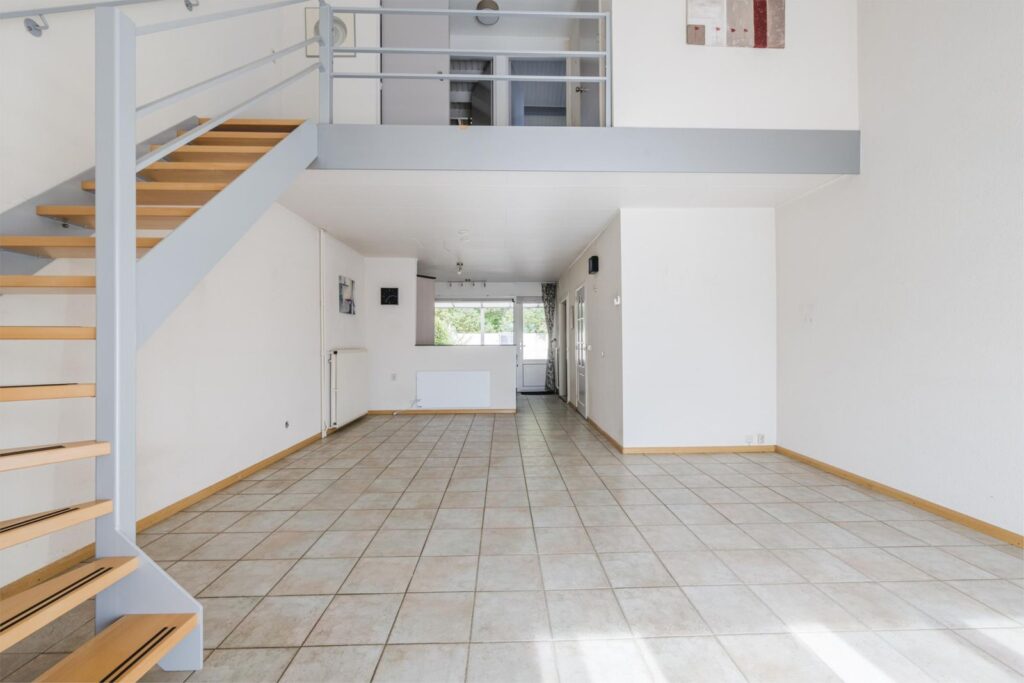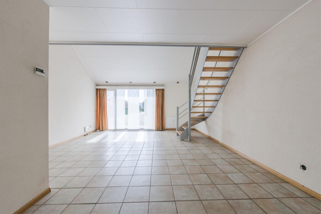 Via de entree kom je in de hal met meterkast, garderobe en toiletruimte. De ruime woonkamer heeft grote raampartijen, waardoor er veel natuurlijk licht binnenvalt en je geniet van het uitzicht op de tuin. De open verbinding met de eethoek zorgt voor een gezellige leefruimte waar je zowel met het gezin als met gasten prettig samenkomt.