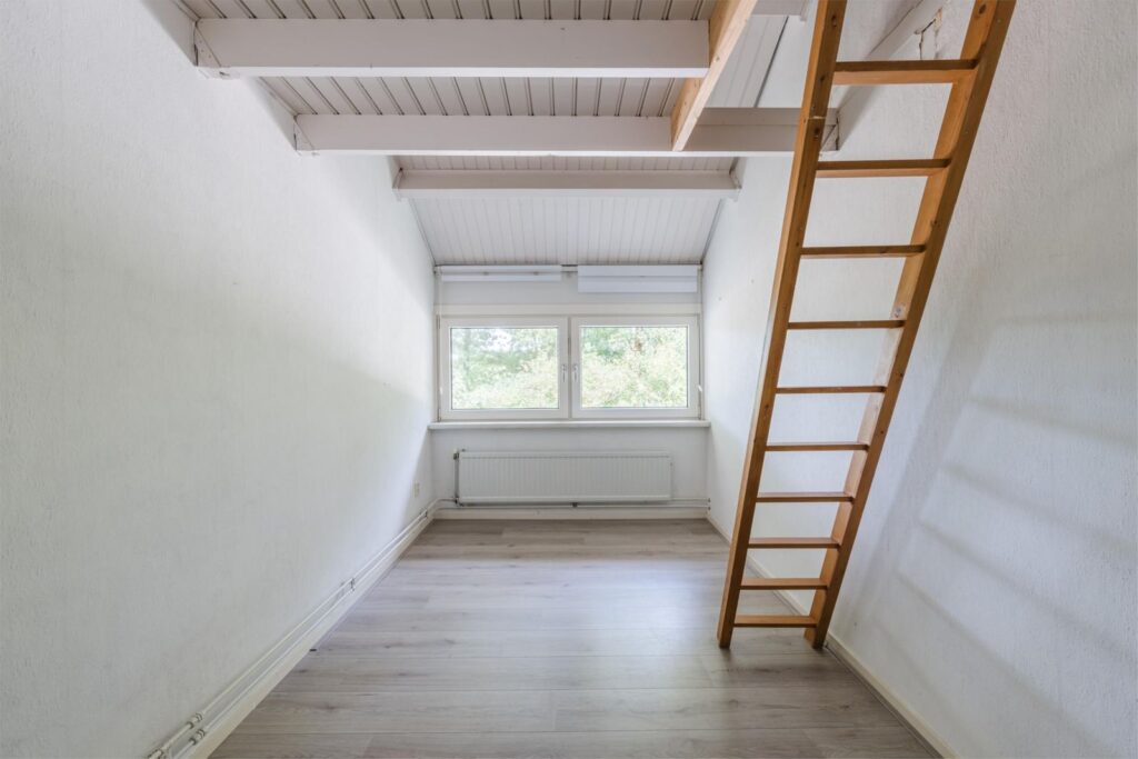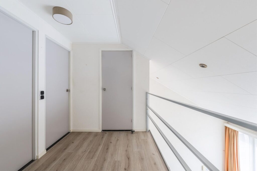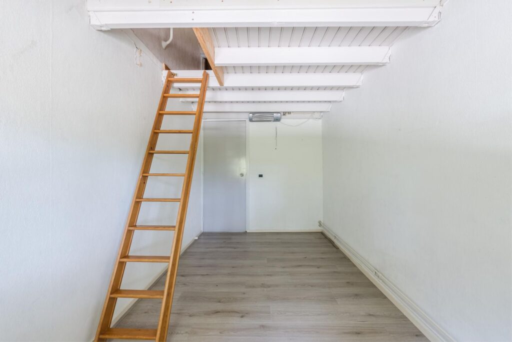 Boven de slaapkamer op de eerste verdieping bevindt zich een handige vliering. Deze extra opbergruimte is ideaal voor spullen die je niet dagelijks nodig hebt.
