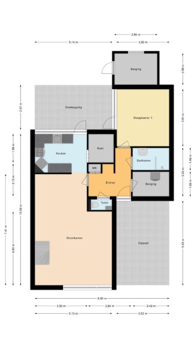 - Ruime oprit met carport
