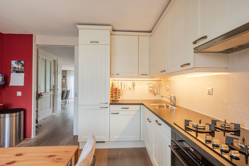 De woonkeuken is open, maar kan worden afgesloten met een schuifdeur. De keuken