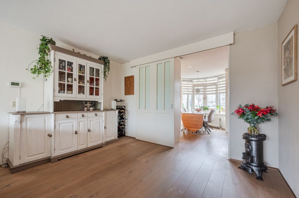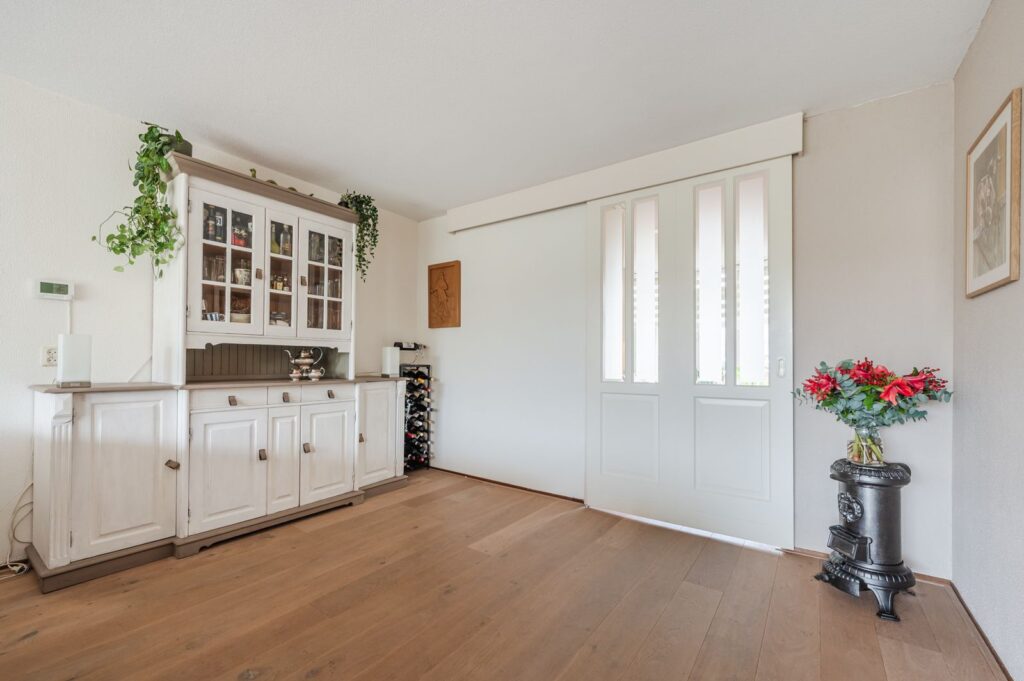 Op de hele benedenverdieping ligt een houten (eiken)vloer.
