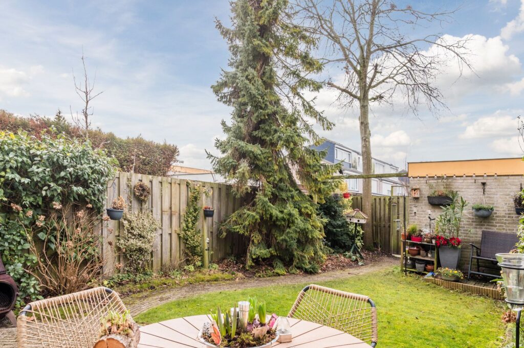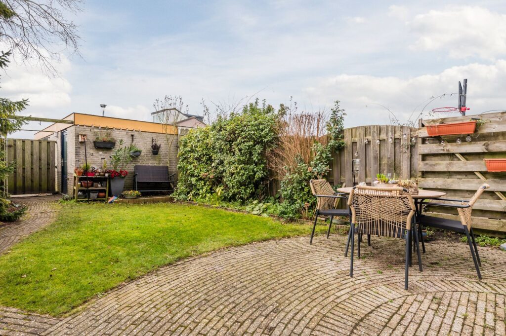 grote garage, parkeerplek op eigen grond en een achtertuin die op het zuidwesten is gelegen.