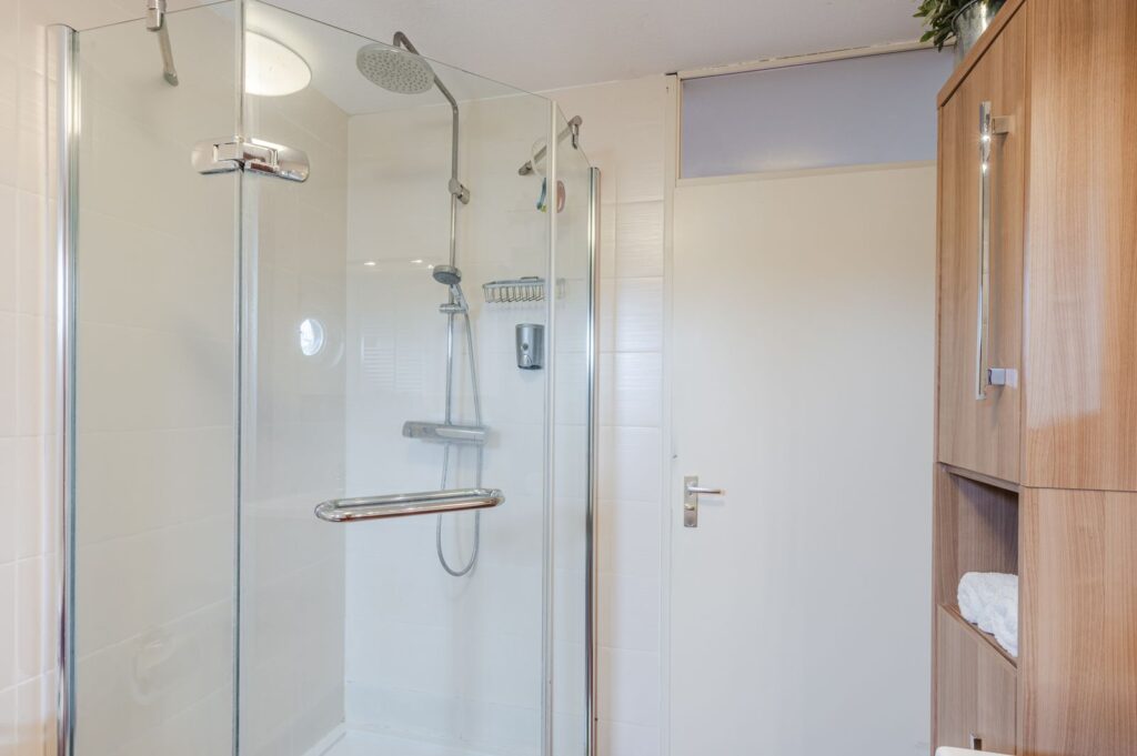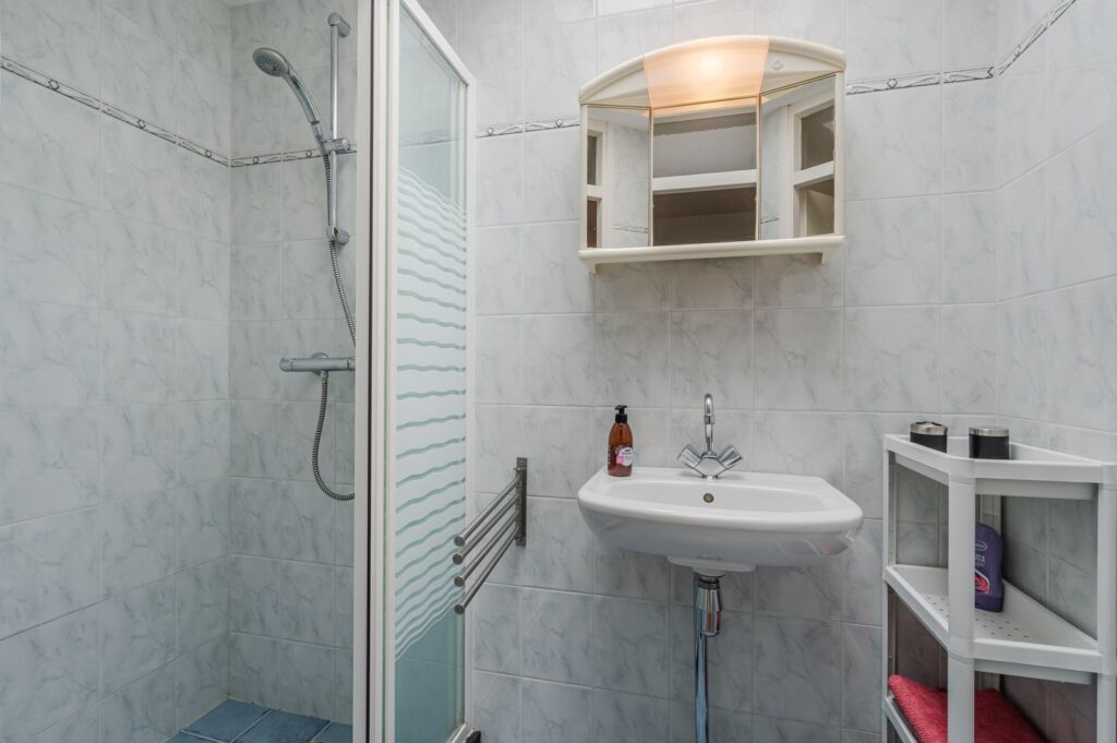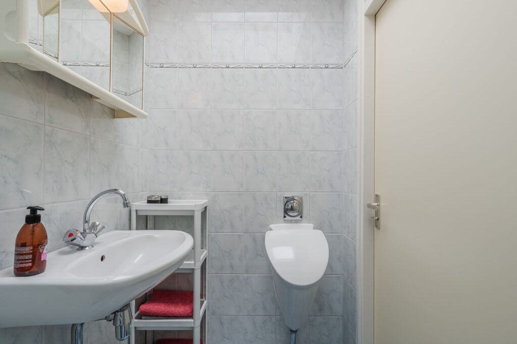 Tevens is hier een tweede badkamer met wastafel, doucheruimte en een urinoir.