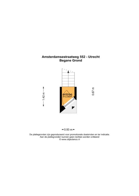 Eigen entree vanaf de straat. Via de voordeur stap je binnen in de hal met trapopgang naar de eerste verdieping.