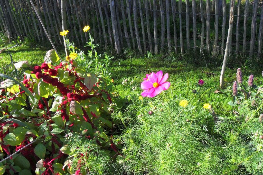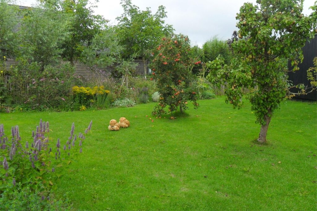 Verder is de tuin ingedeeld met 3 grote moestuinbakken, fruitstruiken en bomen (appel, peer, kers, pruim en amandel) en een prachtige wilde bloemenborder.