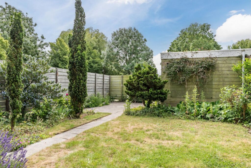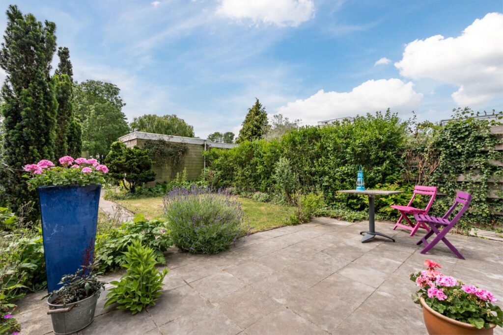 De woning ligt op een perceel van 200 m² met een diepe, zonnige tuin op het zuiden (ca. 14 meter) en vrij uitzicht over het groene landschap. Vanuit zowel de tuin als het balkon van de hoofdslaapkamer kijkt u ver weg de polder in – tot aan Schiedam.