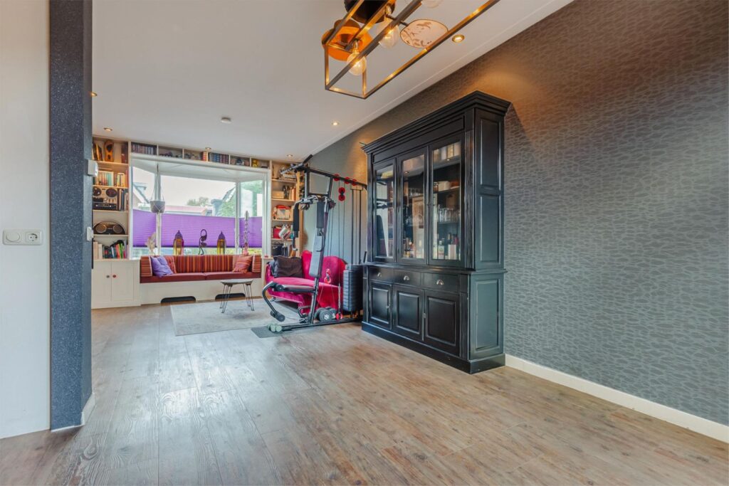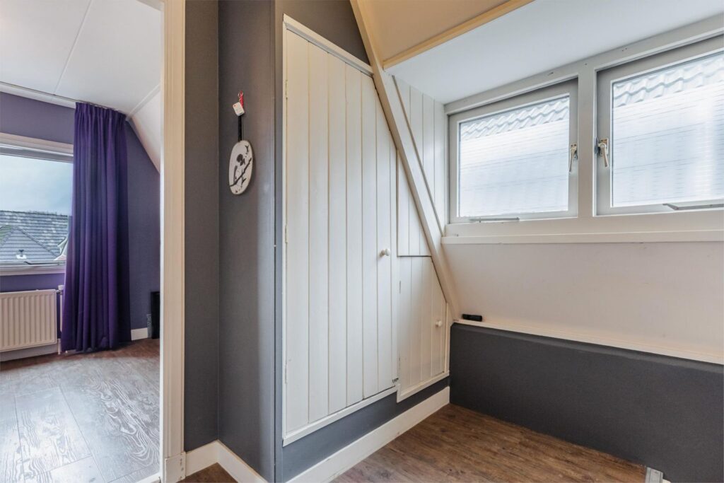 - De zolderverdieping is professioneel bekleed met zeil met houtprint;
