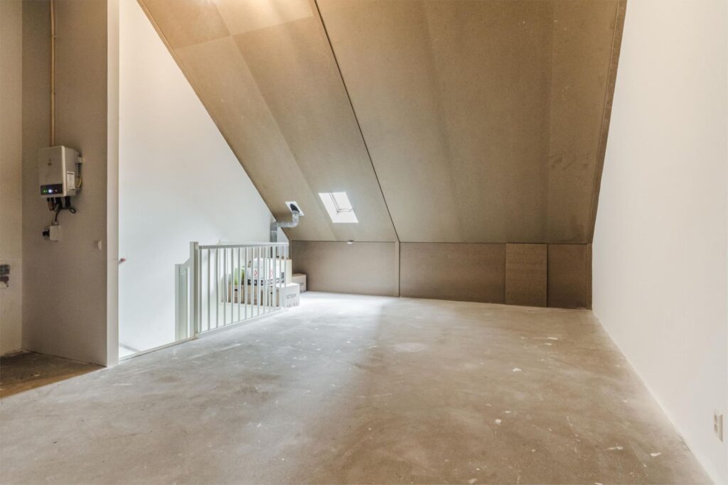 • Royale zolder met gesauste wanden en nog te leggen vloer