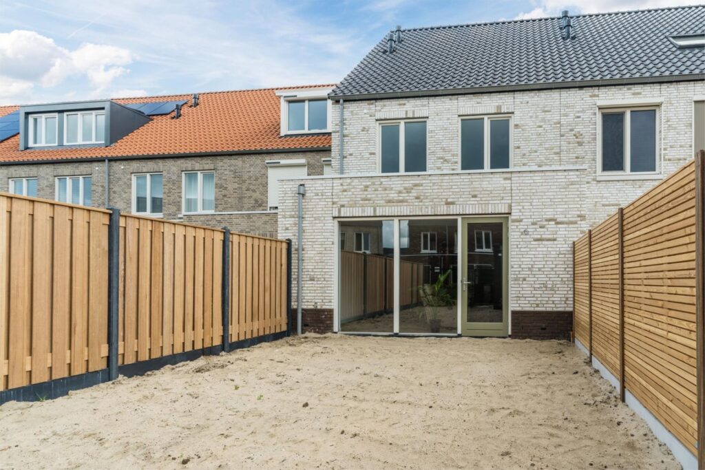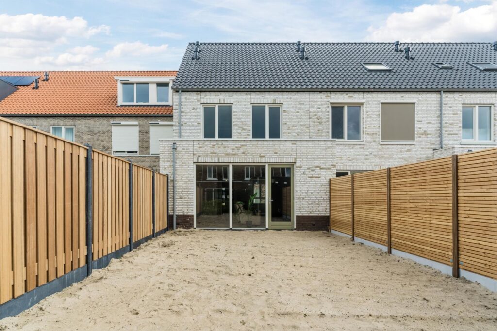 • Tuinen afgegraven en voorzien van zand, klaar om in te richten