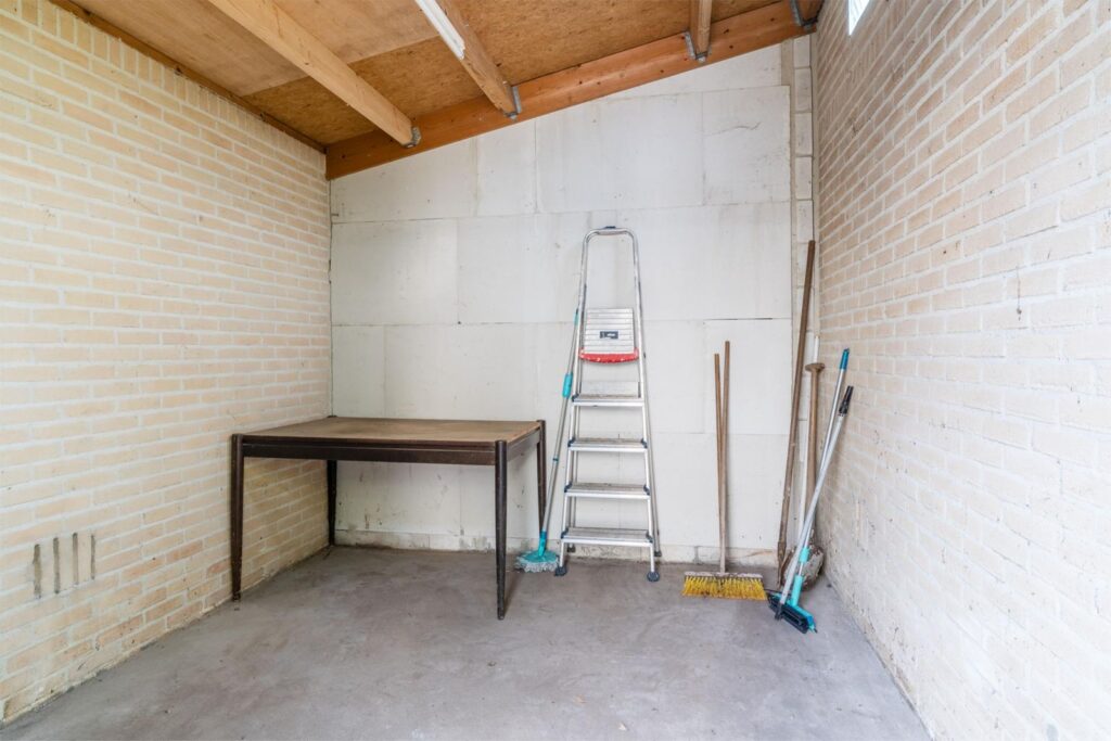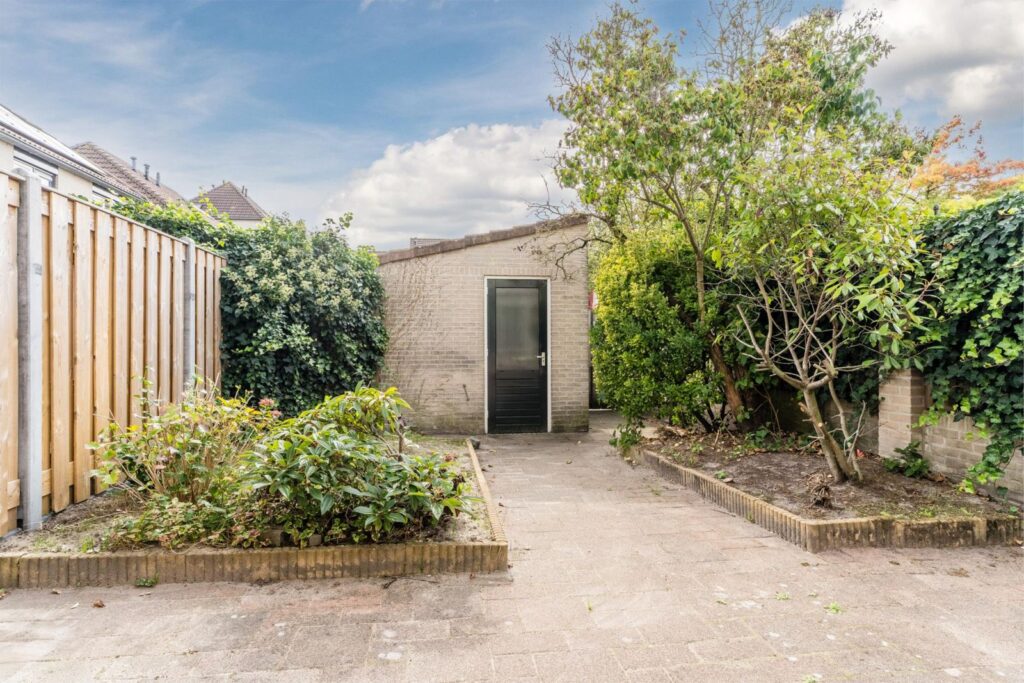 De achtertuin ligt op het zuiden, perfect om van de zon te genieten. De tuin biedt volop privacy en een fijne buitenplek zonder intensief onderhoud. Handig voor opslag, hobby of fiets is een ruime berging achter in de tuin met daarnaast een achteruitgang naar een pleintje met parkeerruimte. Ook voor de woning zijn parkeermogelijkheden.