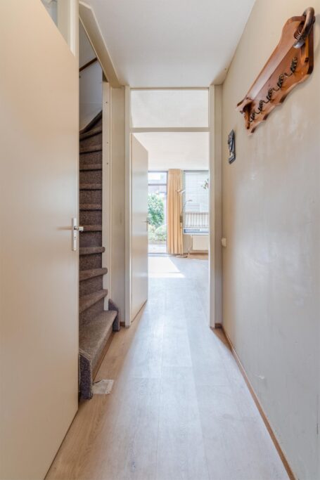 Bij binnenkomst stap je in een lichte en tuingerichte woonkamer met een fijne, open sfeer. De halfopen keuken is praktisch ingericht en staat in directe verbinding met de woonkamer, wat zorgt voor een ruimtelijk geheel. Op de eerste verdieping vind je drie slaapkamers en een badkamer met douche, wastafel en een tweede toilet.