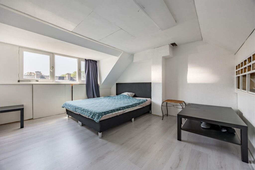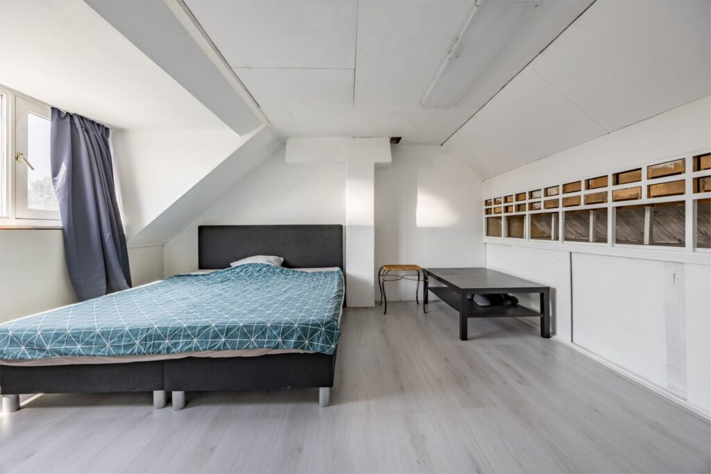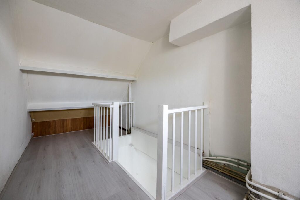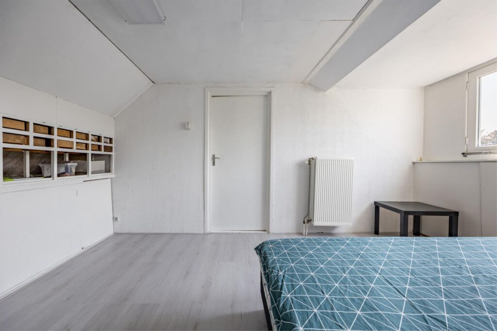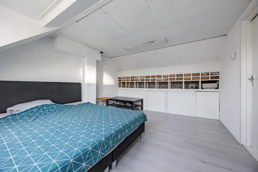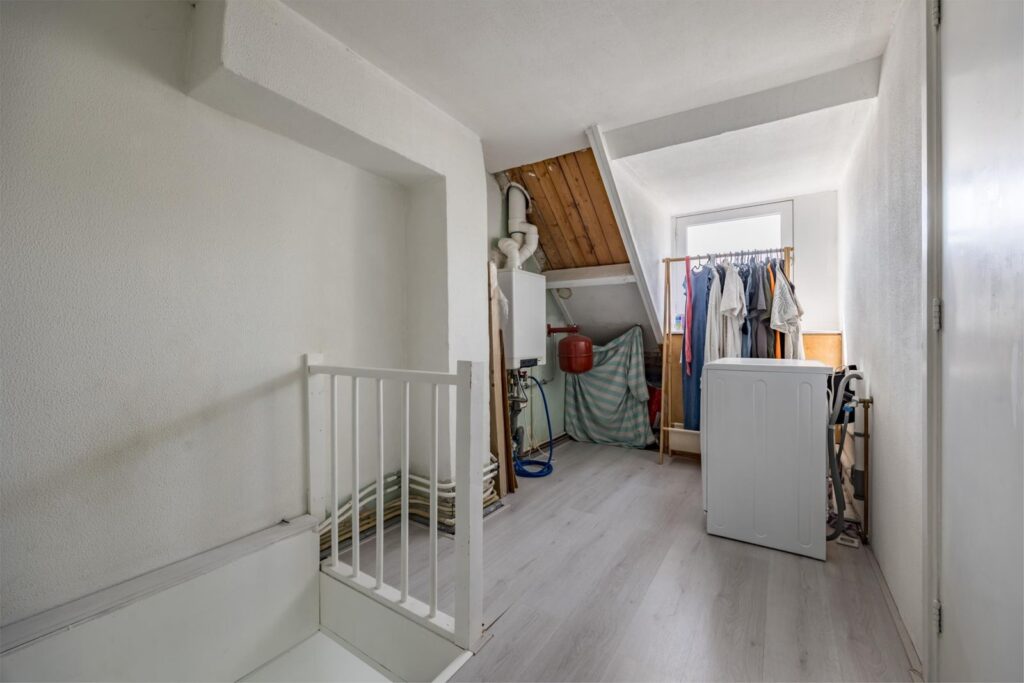 Bergzolder en slaapkamer: Hier vind je een dakraam, de CV-installatie en wasmachine. De slaapkamerzolder is voorzien van een dakkapel wat meer ruimte biedt.