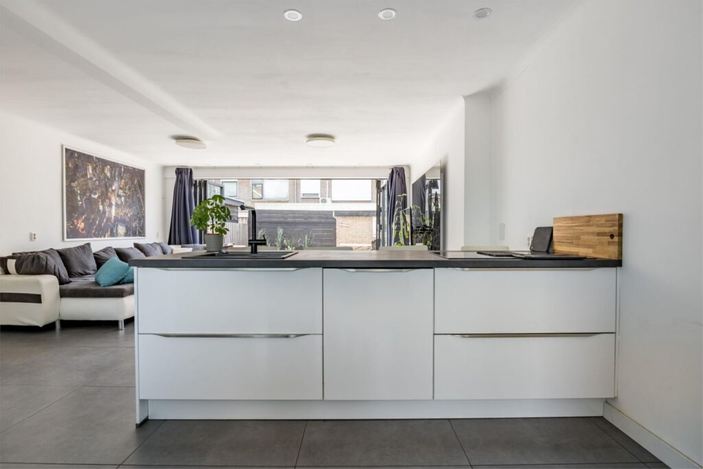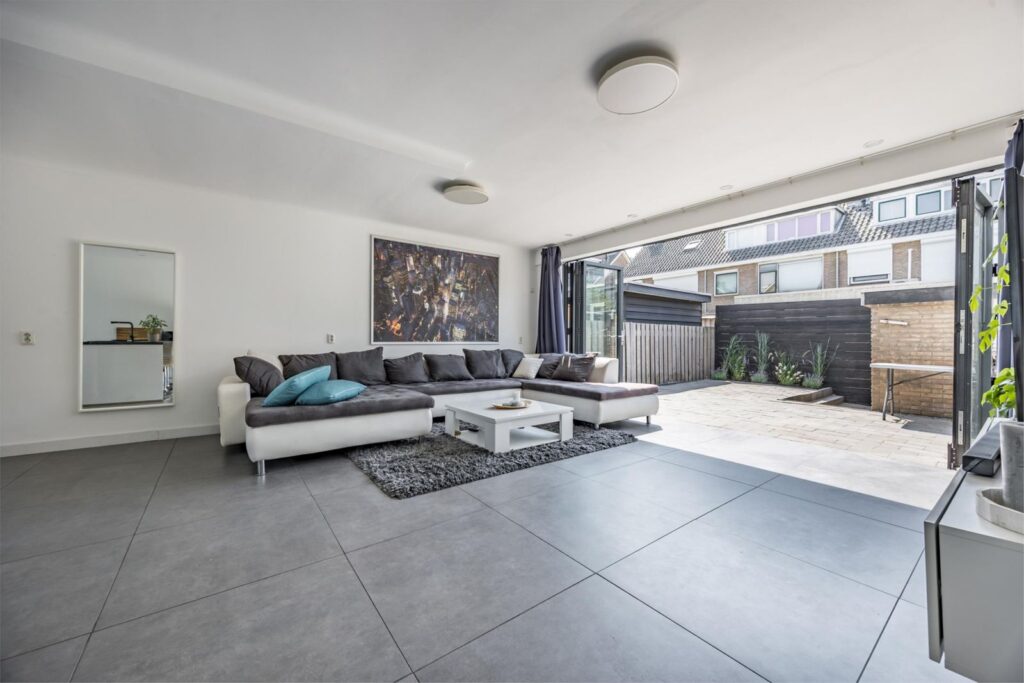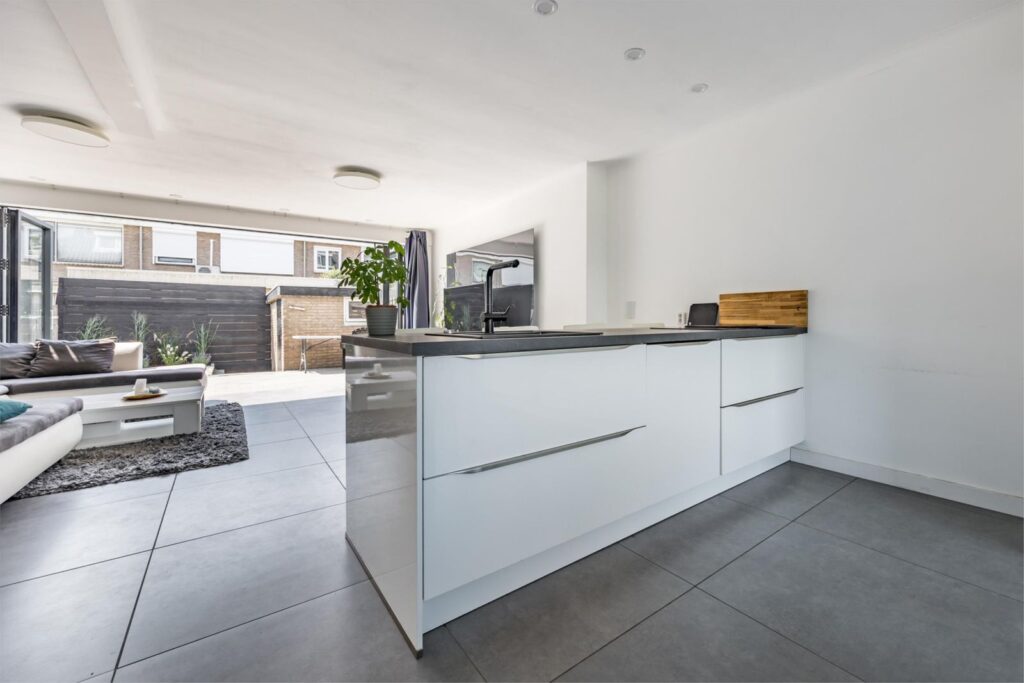 Deze moderne strakke woning in Slikkerveer biedt alles wat je zoekt! Deze woning is een pareltje, gelegen in de geliefde wijk Slikkerveer. Met een eigentijdse uitstraling en veel comfort is dit een heerlijke plek om te wonen. De begane grond is indrukwekkend: een royale uitbouw heeft plaatsgemaakt voor een fantastische woonkeuken, dé plek waar iedereen samenkomt. De houten vloer is vervangen door een betonnen vloer met vloerverwarming, en dankzij de harmonica deurkozijnen kun je de achterzijde van de woning volledig openzetten. Hierdoor lopen woonkamer en tuin moeiteloos in elkaar over en voelt het alsof je binnen en buiten als één geheel beleeft.