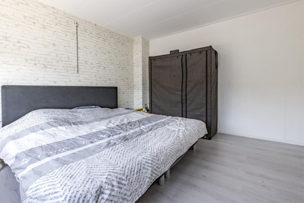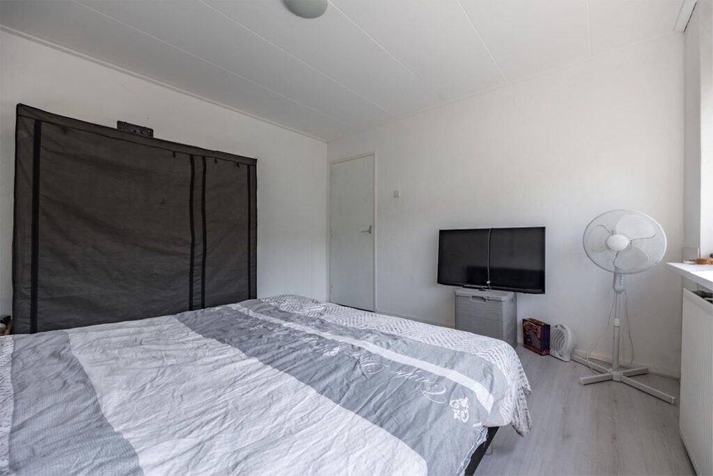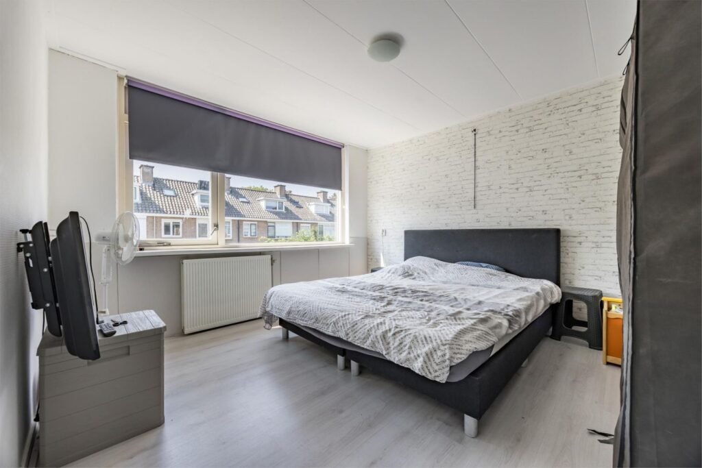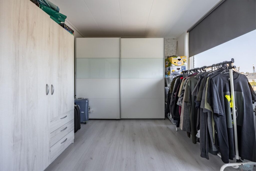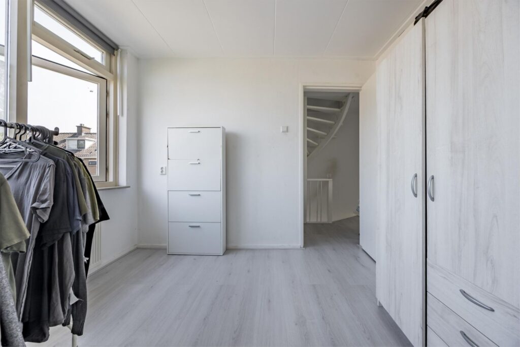 Slaapkamers: De woning beschikt over drie slaapkamers. De ouderslaapkamer aan de achterzijde biedt uitzicht op de tuin, terwijl een andere kamer momenteel als kastenkamer is ingericht en zolderkamer.