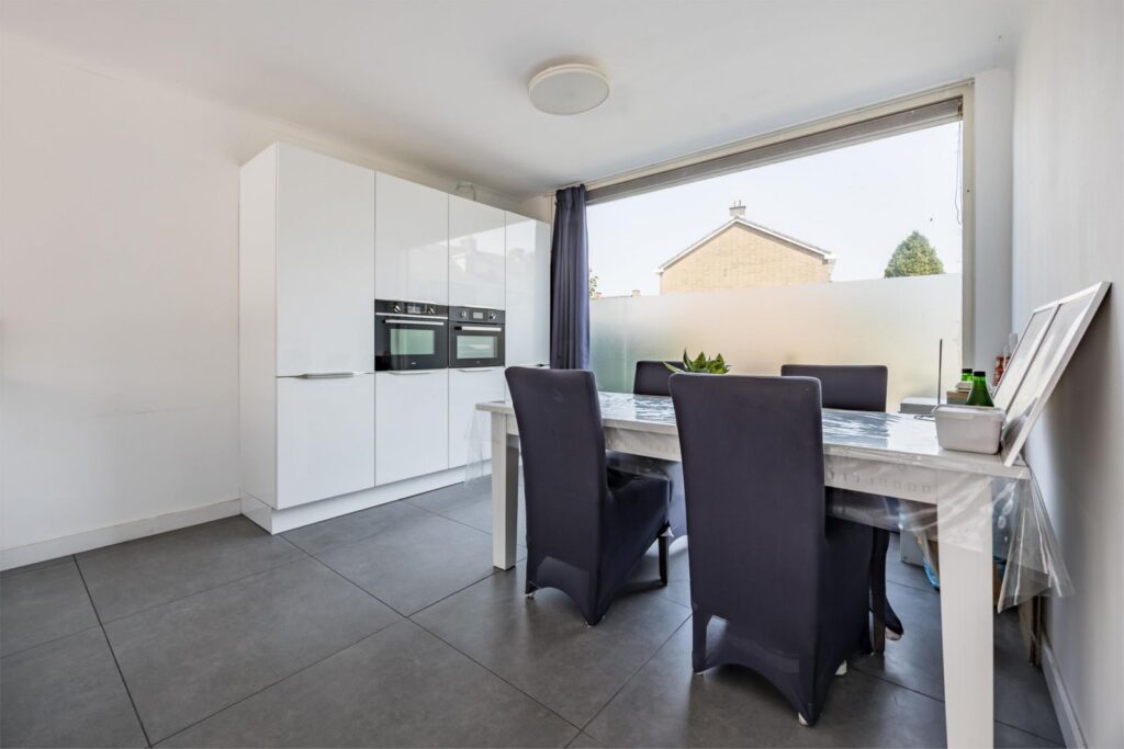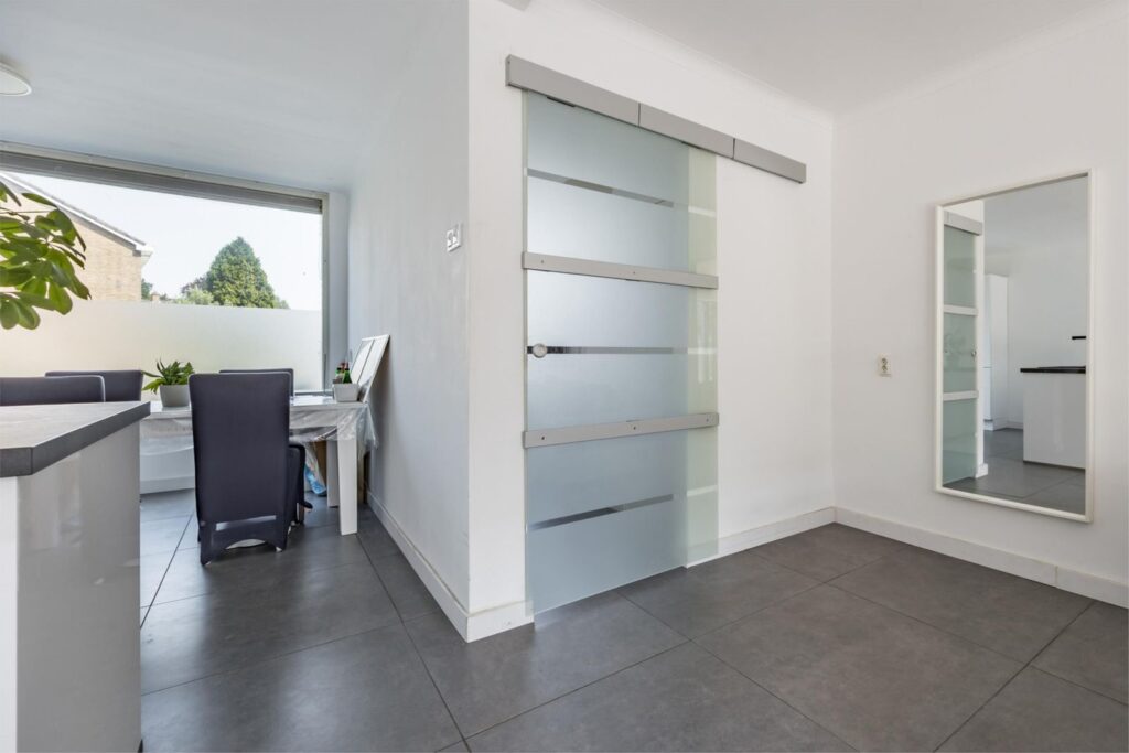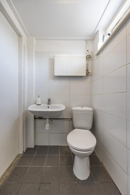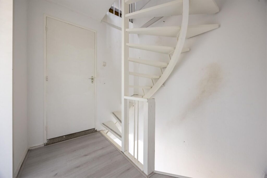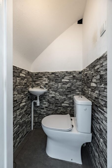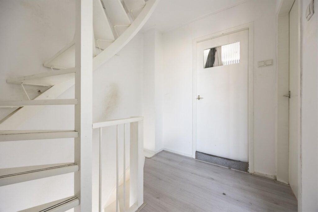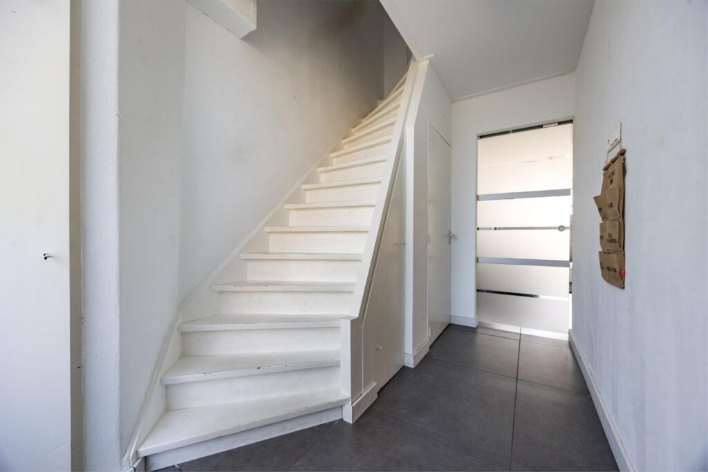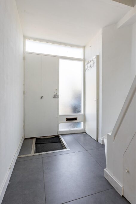 Entree & hal: Via de hal bereik je de trap naar de eerste verdieping en de toegang tot de woonkamer. Hier vind je ook de kelderkast, vernieuwde meterkast en een modern betegeld toilet in antraciet tinten.