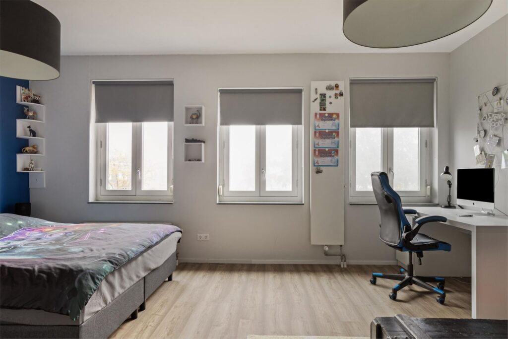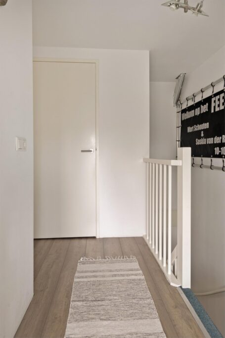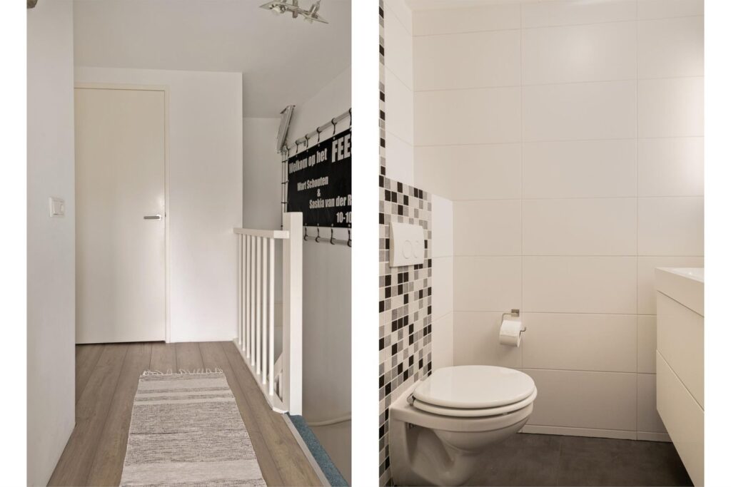 Op de 1e verdieping zien we wederom hoe prettig en ruim deze woning is ingedeeld. De overloop biedt toegang tot 2 (voorheen drie) slaapkamers en een moderne badkamer die in 2023 is vernieuwd inclusief vloerverwarming. De badkamer is voorzien van een inloopdouche, bad, wastafelmeubel met wastafel, mechanische ventilatie en 2e toilet.