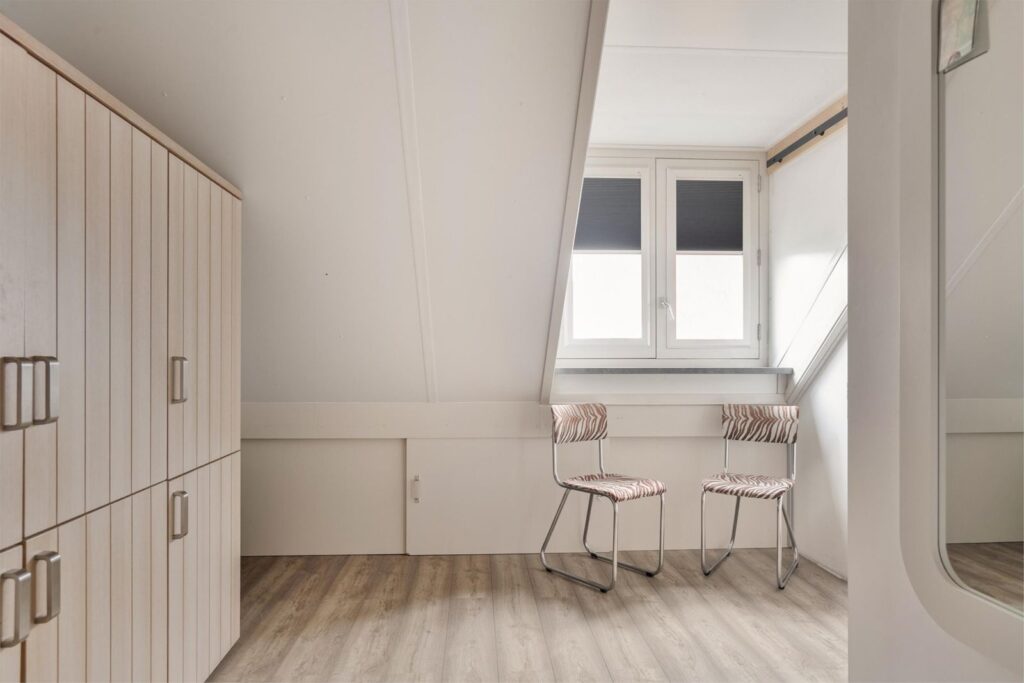 De 2ede slaapkamer is circa 18 M2 beschikt over veel daglicht en is gelegen aan de achterzijde van de woning.