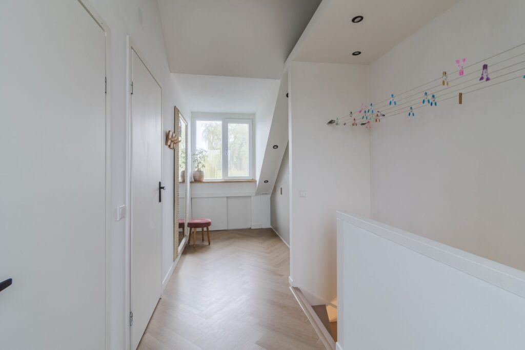 Eind 2022 zijn aan zowel de voor- als achterzijde dakkapellen over de volledige breedte van de woning geplaatst. Hierdoor is een verrassend ruime zolderverdieping ontstaan met twee volwaardige slaapkamers.