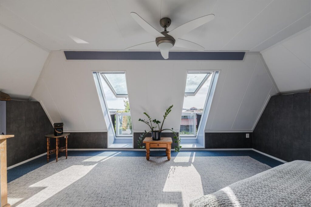 •Masterbedroom (38 m2) met inloopkast, uniek uitzicht via twee Velux cabrio balkonvensters (2022)