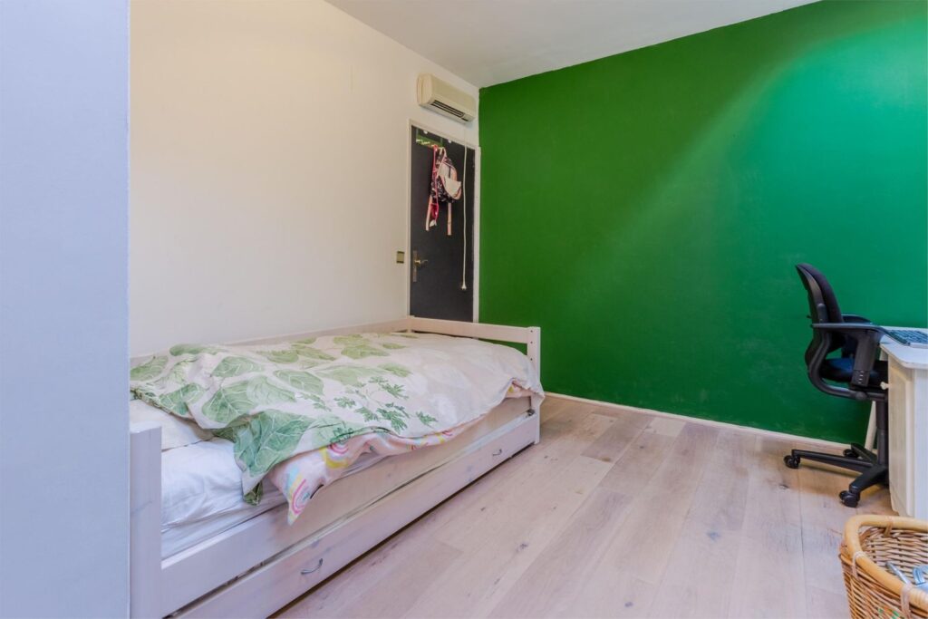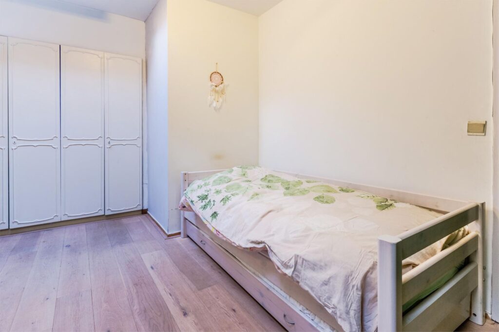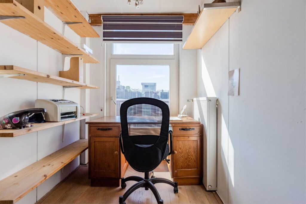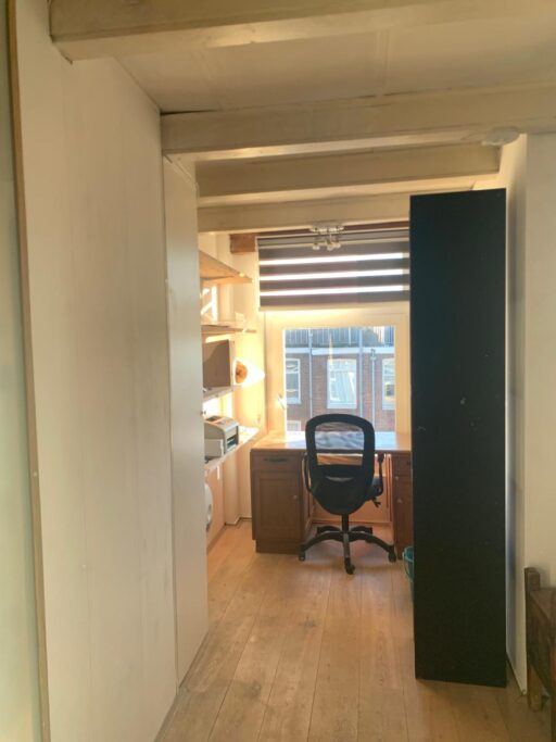 Aan de voorzijde bevinden zich twee slaapkamers met inbouwkasten over de volle breedte van de kamers. Hoewel deze kamers aan de straatzijde liggen, is het er toch rustig om te werken of te slapen!