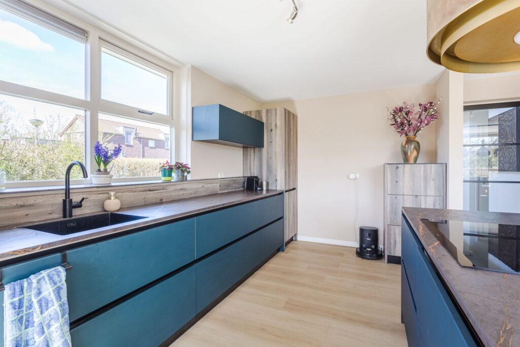 De semibungalow beschikt op de begane grond over een royale, zonnige woonkamer en een luxe, moderne keuken die is voorzien van alle denkbare inbouwapparatuur. Tevens vindt u hier een ruime slaapkamer met een zeer luxe en-suite badkamer, uitgerust met een stortdouche, toilet, urinoir en een grote wastafel. De begane grond beschikt verder over een ruime hal met vide, een separaat toilet en een praktische wasruimte/berging met aparte wasbak.