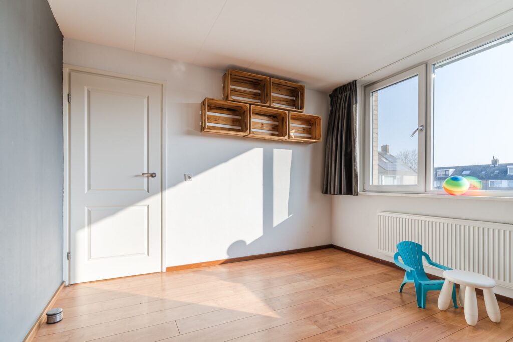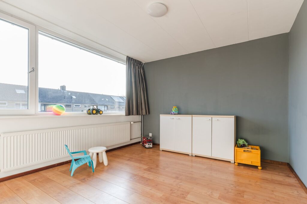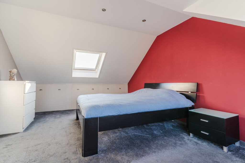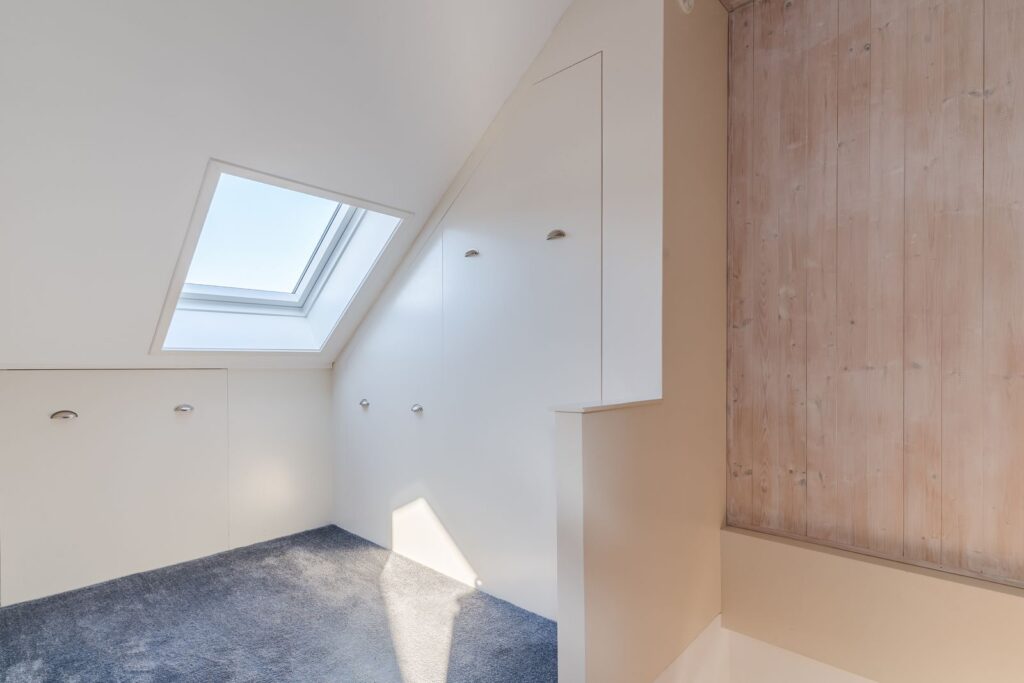 Daarnaast is hier een grote vierde slaapkamer gerealiseerd, voorzien van een dakkapel met rolluik, dat zorgt voor veel daglicht. De hele zolder is geheel afgewerkt en aan de zijkanten (knieschot) voorzien van opbergkasten.