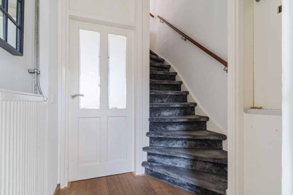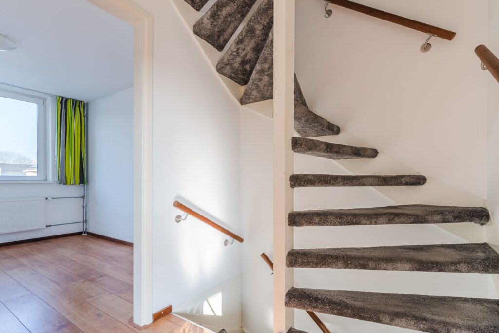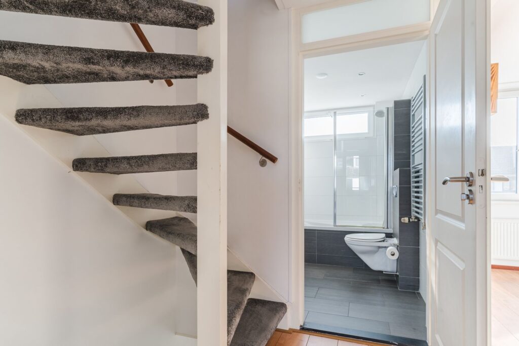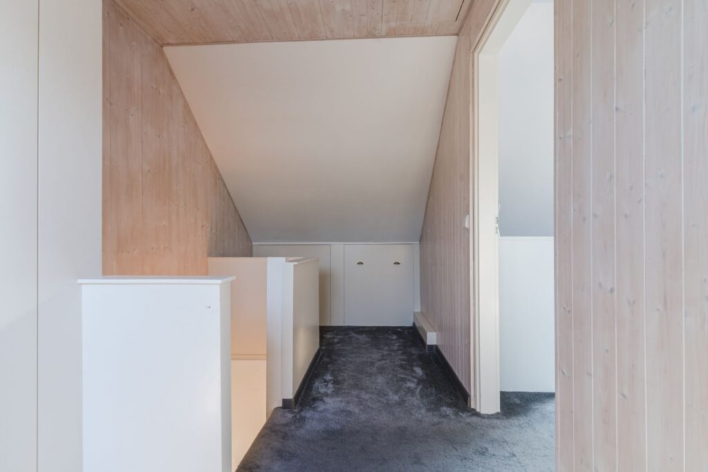 Met een vaste trap heb je toegang tot de tweede verdieping waar je op de overloop de cv-installatie, netjes weggewerkt in een kast.