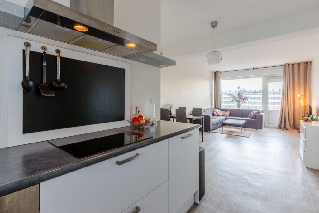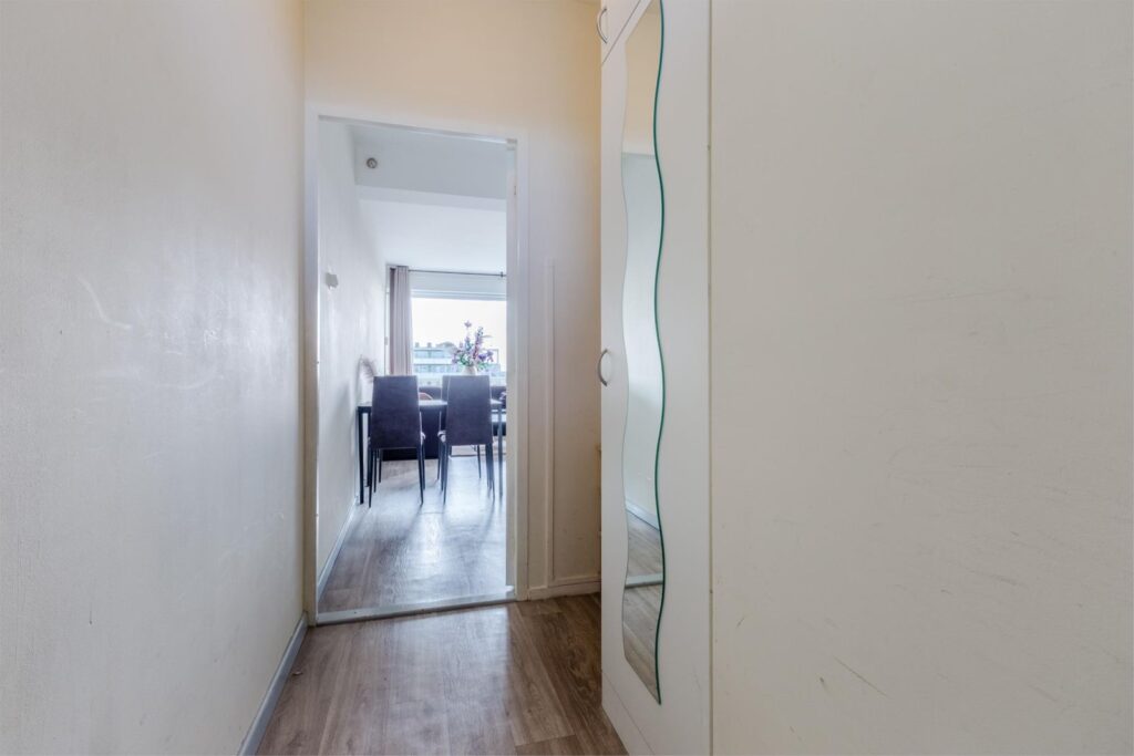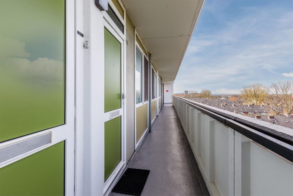 Een zeer lichte ruime woning gelegen op de achtste verdieping van het goed onderhouden complex Boutenburg. Doordat de zon opkomt in de woonkamer en ondergaat in de keuken is het een heerlijk lichte woning. De hal leidt je naar de royale woonkamer en de open keuken. De grote raampartijen geven een mooi zicht naar buiten, en maken de ruimte ook uitnodigend en aangenaam. De L-opstelling open keuken is praktisch ingericht met voldoende werkruimte. Op het heerlijk zonnig zuiden-balkon kan je heel wat uurtjes kan bruinen en genieten.