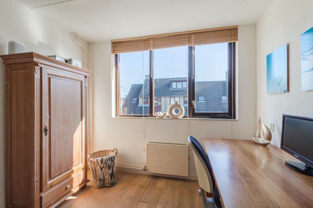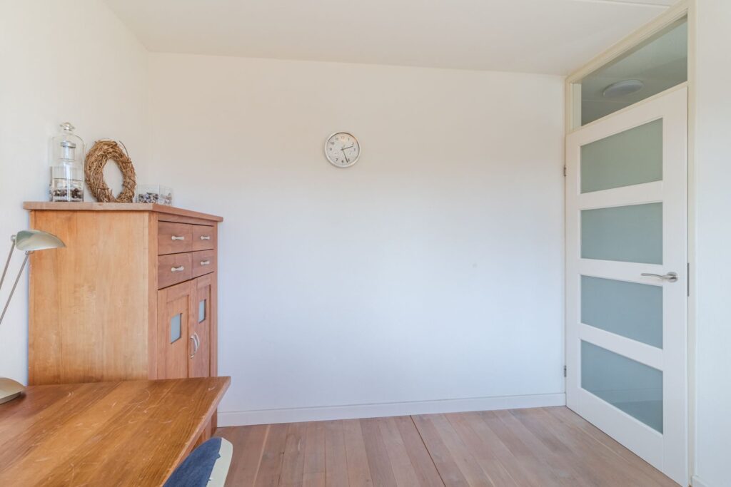 De gehele bovenverdieping (exclusief de badkamer) is voorzien van een massief eikenhouten vloer.