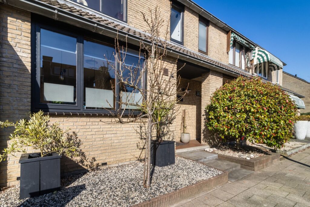 Je betreedt de woning via de verzorgde voortuin.