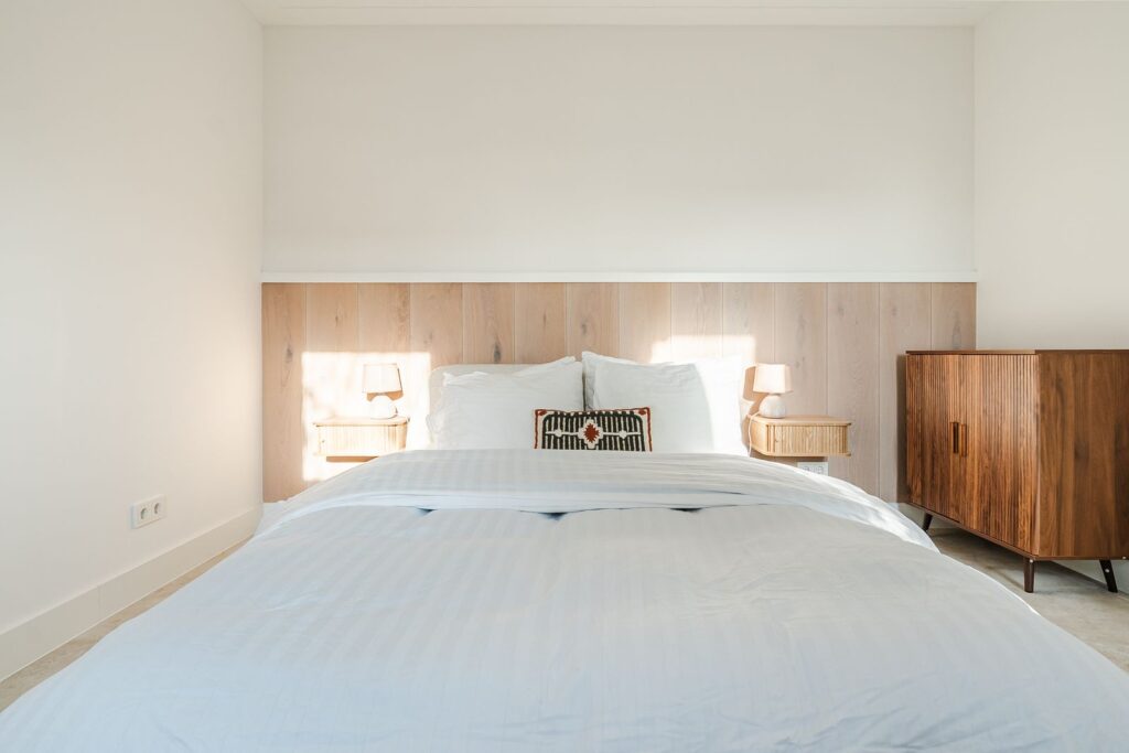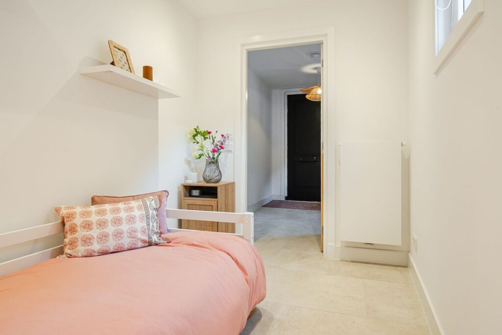 De woning beschikt over 2 slaapkamers, 1 ruime slaapkamer en 1 wat kleinere slaapkamer geschikt voor een een-persoonsbed of stapelbed. Beiden slaapkamers hebben een en-suite badkamer. Ideaal voor een klein gezin of wie wonen en werken wil combineren.