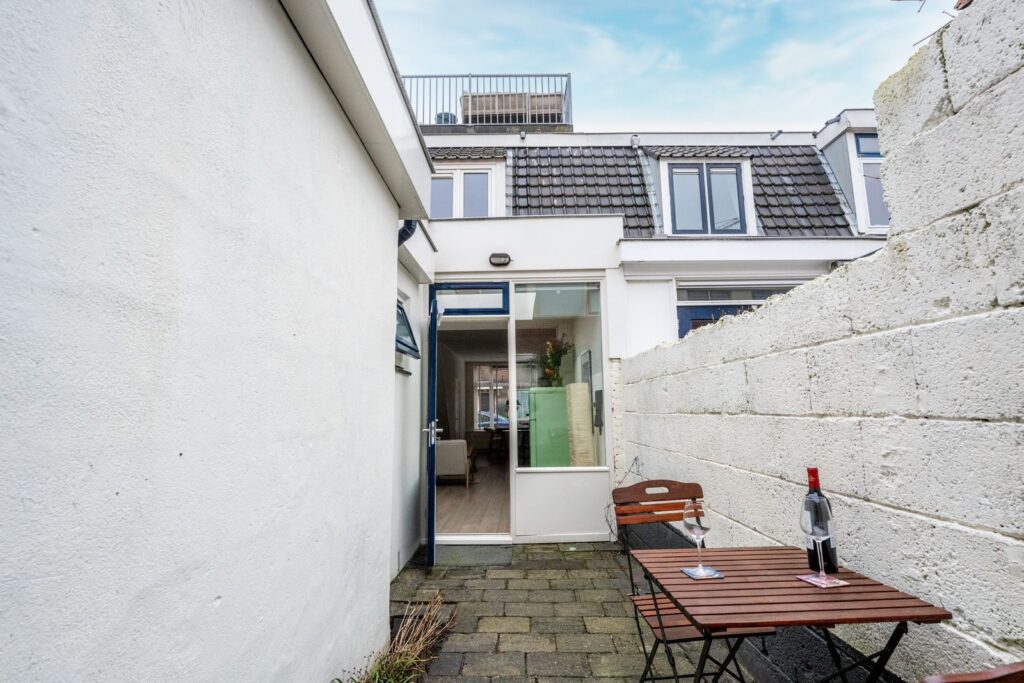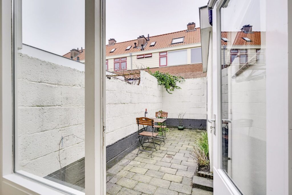Via the back door, you step into the sunny southwest-facing city garden. A sheltered spot where you can enjoy the sun in the afternoon and evening. Ideal for drinks with friends or a quiet morning coffee. At the back of the garden, there is a storage shed, perfect for bicycles, tools, and extra storage.