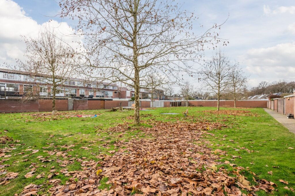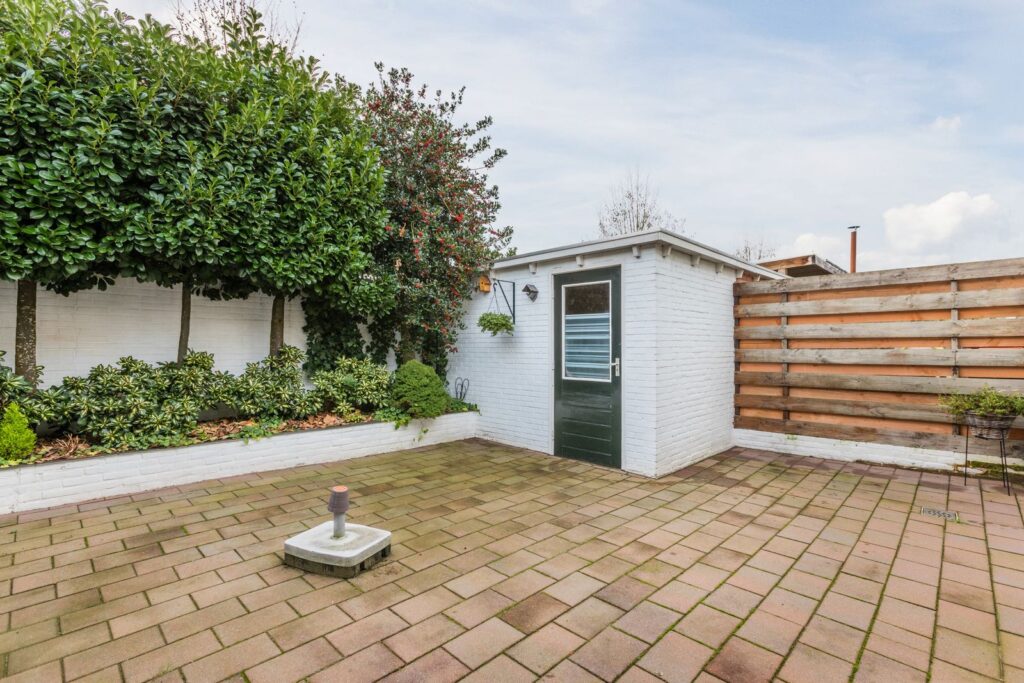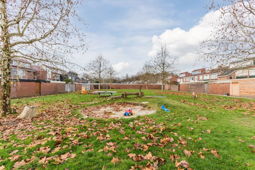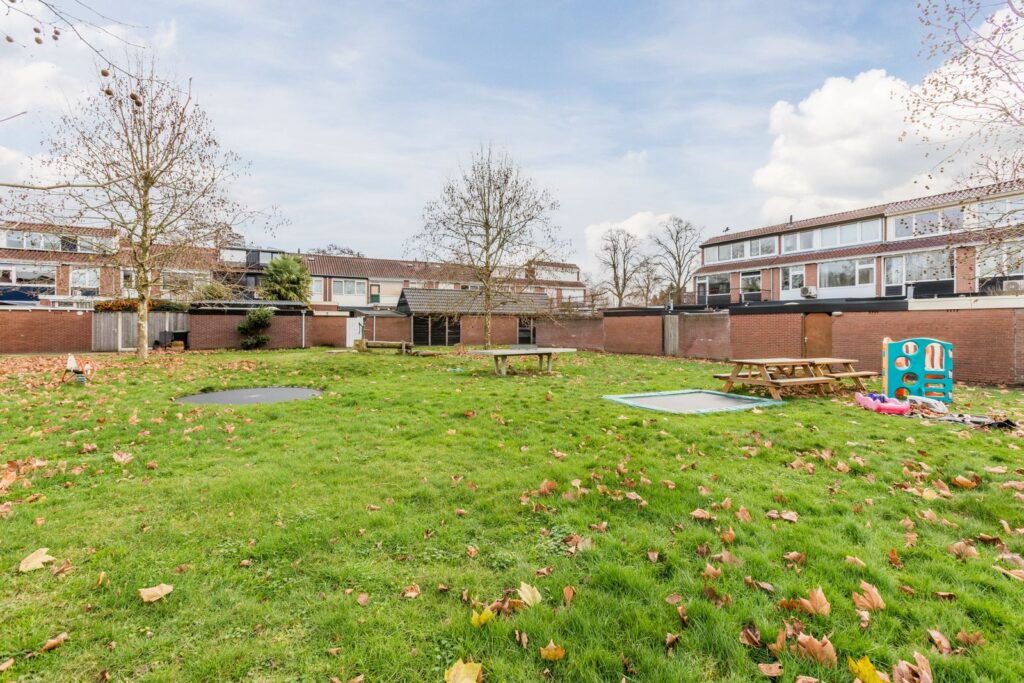 De achtertuin is goed onderhouden, gelegen op het zuiden, en voorzien van een overkapping waar je al vroeg in het seizoen heerlijk buiten zit. Daarnaast zijn er twee stenen bergingen, ideaal voor fietsen, gereedschap en opslag. Parkeren kan op eigen terrein, en in de directe omgeving is bovendien ruim voldoende parkeergelegenheid. Achter de woning ligt een gezamenlijk grasveld, een prettige en veilige speelplek voor kinderen en een fijne extra “groene achtertuin” in het dagelijks leven.