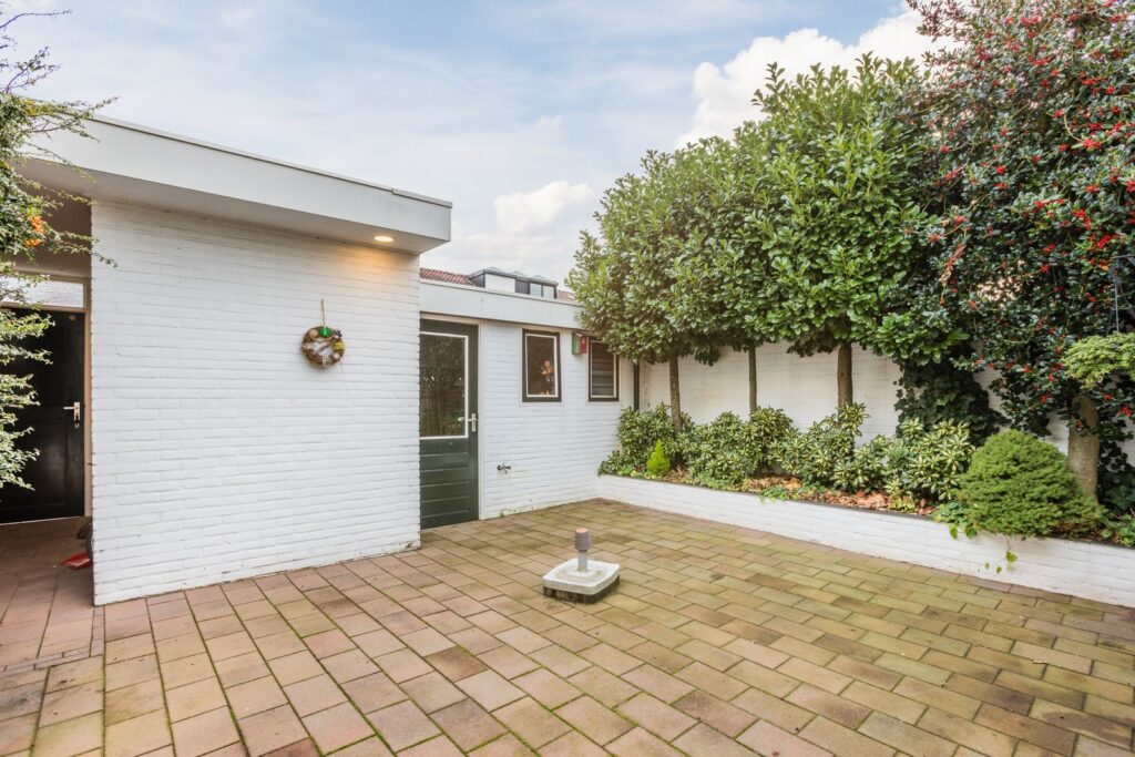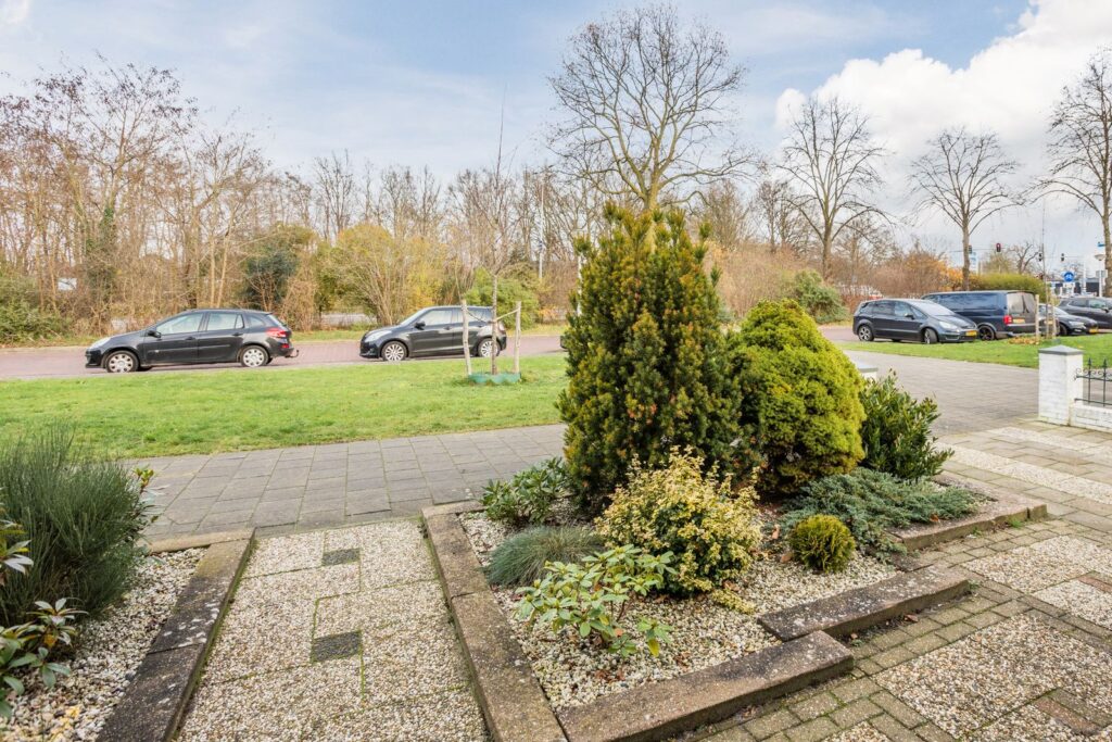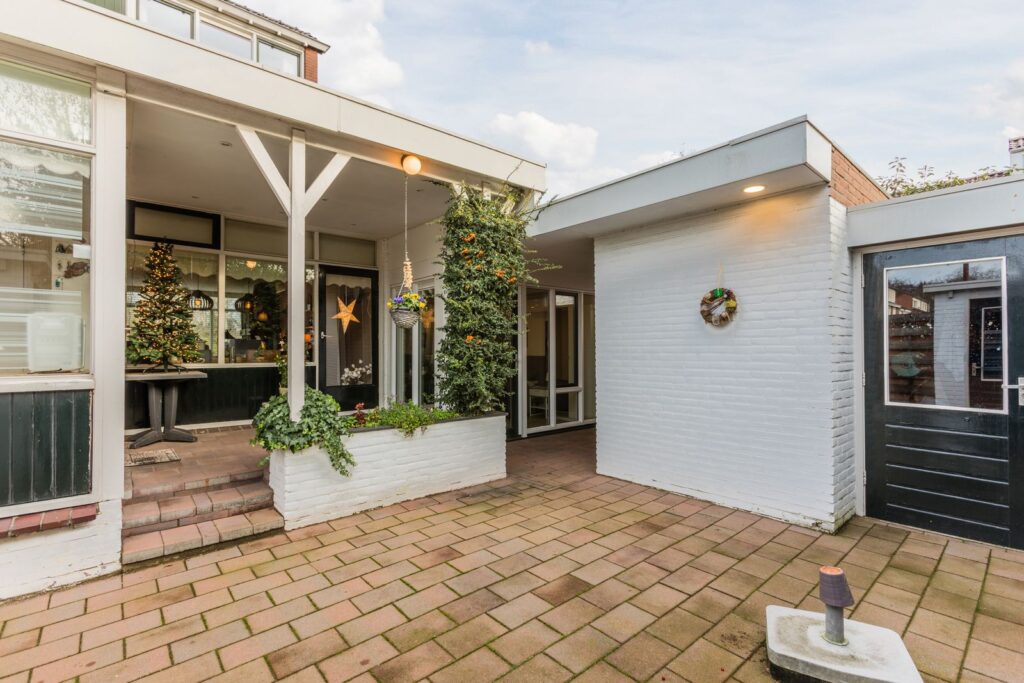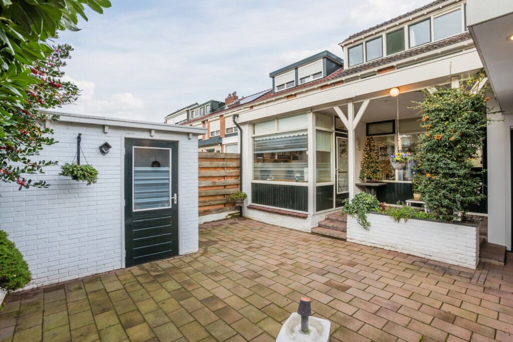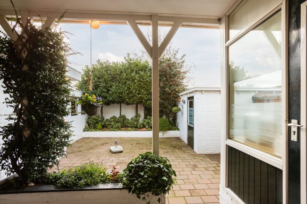 De achtertuin is goed onderhouden, gelegen op het zuiden, en voorzien van een overkapping waar je al vroeg in het seizoen heerlijk buiten zit. Daarnaast zijn er twee stenen bergingen, ideaal voor fietsen, gereedschap en opslag. Parkeren kan op eigen terrein, en in de directe omgeving is bovendien ruim voldoende parkeergelegenheid. Achter de woning ligt een gezamenlijk grasveld, een prettige en veilige speelplek voor kinderen en een fijne extra “groene achtertuin” in het dagelijks leven.