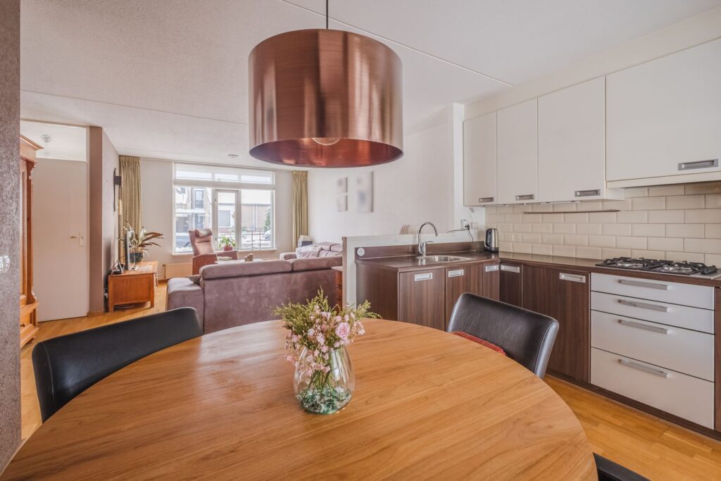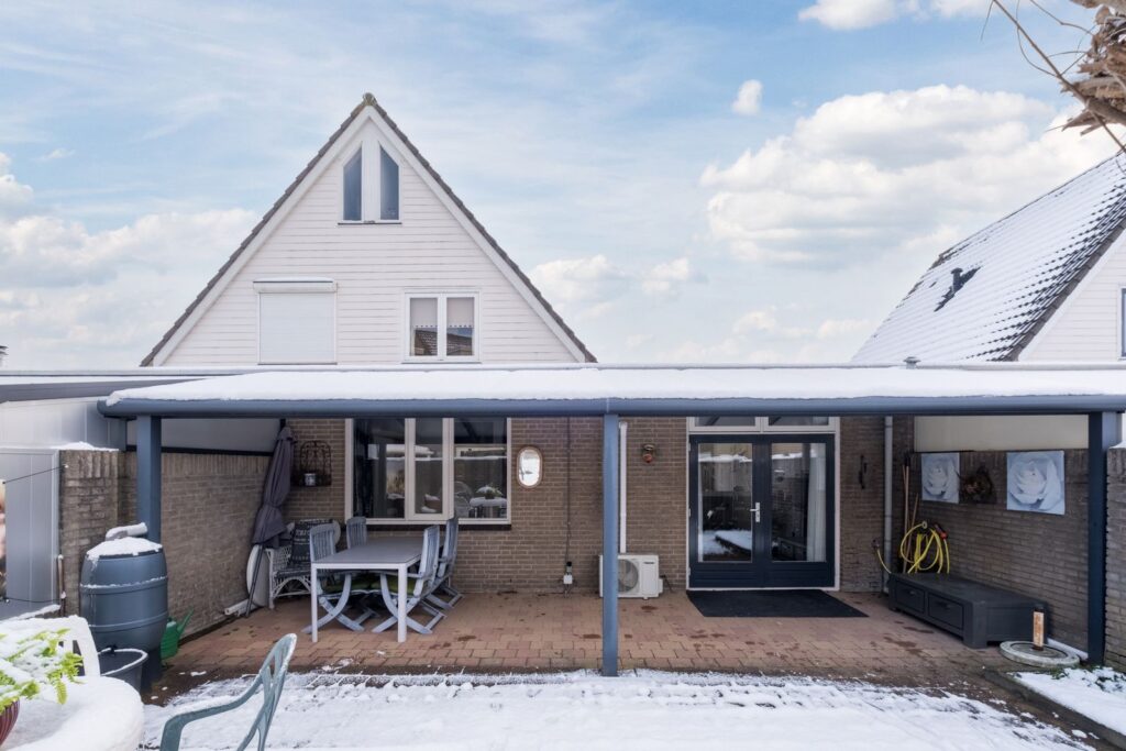 De entree biedt toegang tot de meterkast (7 groepen), het toilet, voorraadkast en een praktische inpandige berging/fietsenruimte. Deze berging beschikt over witgoedaansluitingen en een eigen loopdeur naar buiten – ideaal voor de fietsen!