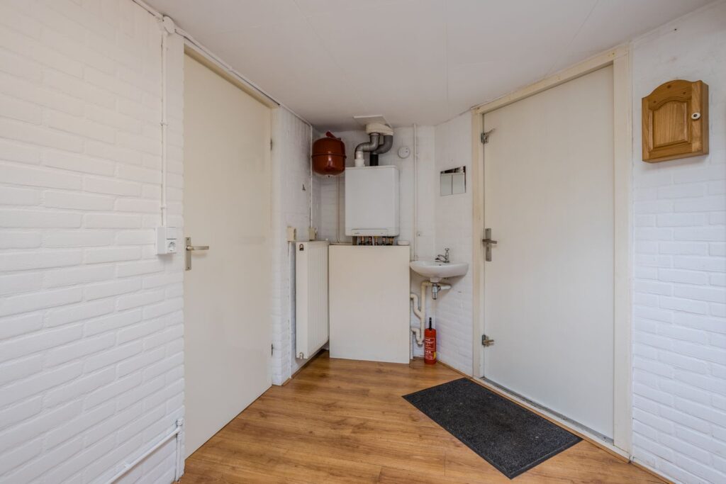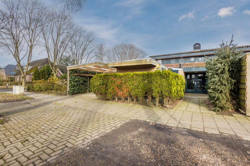 De woning beschikt over een praktische bijkeuken met wasmachineaansluiting en de opstelplaats van de cv-ketel. Verder zijn er een carport en een aangebouwde schuur aanwezig.