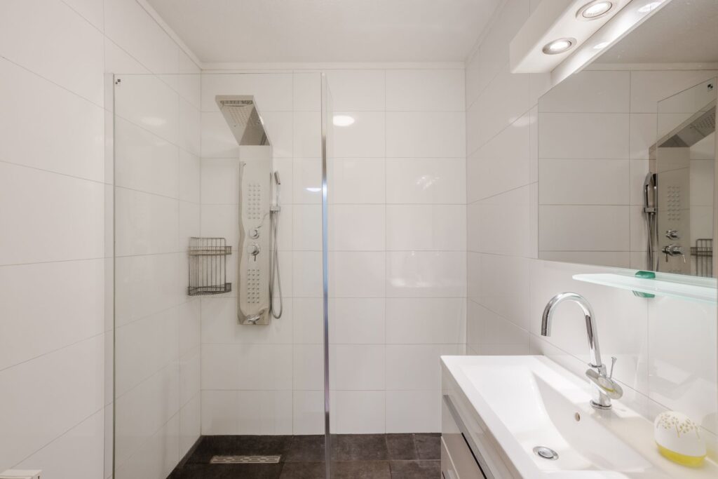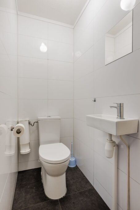 Op de begane grond bevindt zich een slaapkamer aan de voorzijde van de woning. Daarnaast is er een separate toiletruimte en een badkamer, beide vernieuwd in 2022. De badkamer is uitgerust met een inloop regen-/massagedouche en een wastafelmeubel. Op de eerste verdieping bevindt zich de tweede slaapkamer.
