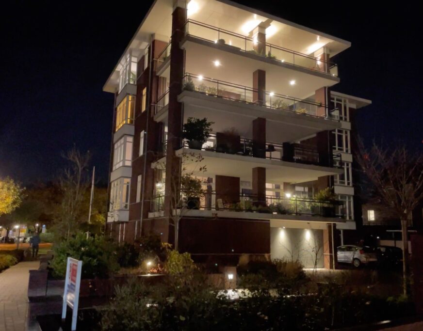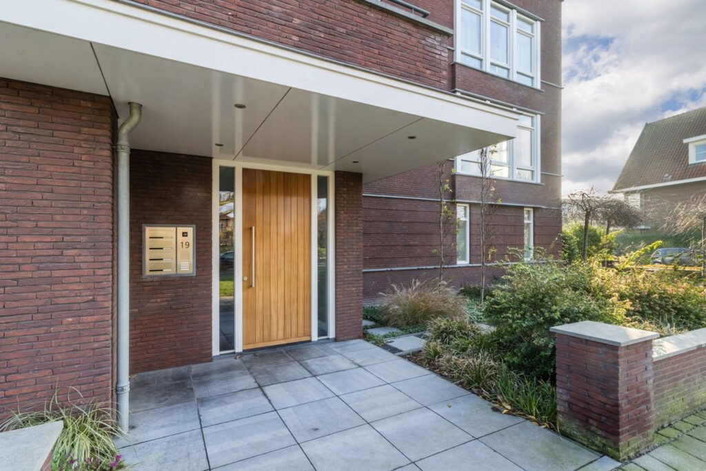 Uniek is de inpandige garage, op de begane grond, die direct vanuit het gebouw bereikbaar is - een absolute meerwaarde in gemak en veiligheid. Daarnaast is op het eigen terrein een 2e parkeerplaats beschikbaar. Rondom het gebouw is een onder architectuur aangelegde tuin. Op de begane grond is extra berguimte voor fietsen of seizoensspullen. In de garage is elektrisch laden voorbereid.